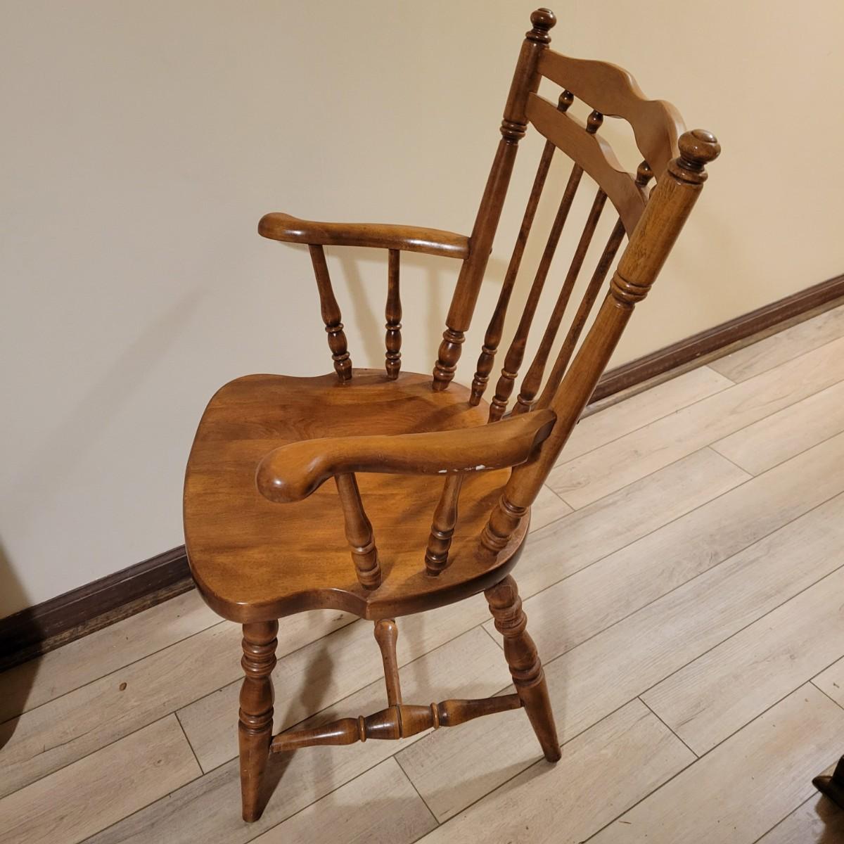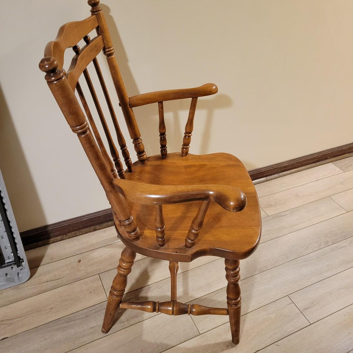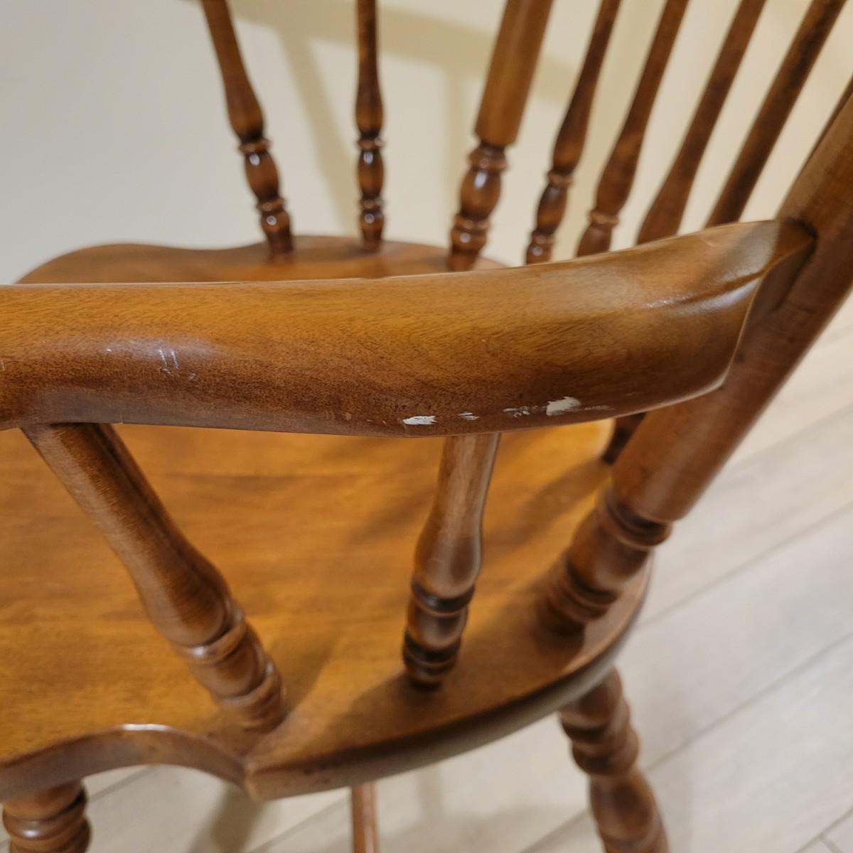 A solid wood, lathe back Windsor chair by Maple Center Inc. It measures approximately 25" x 23" x 36"H with a seat height of 17.5". Local pickup only