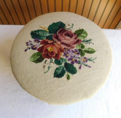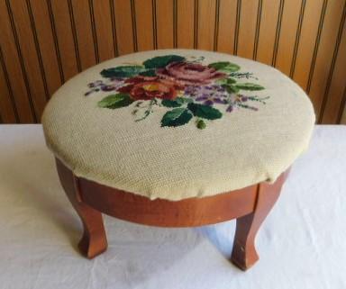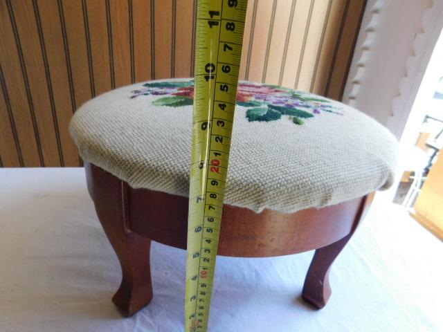 Maple Frame Foot Stool with Needle Work Cushion