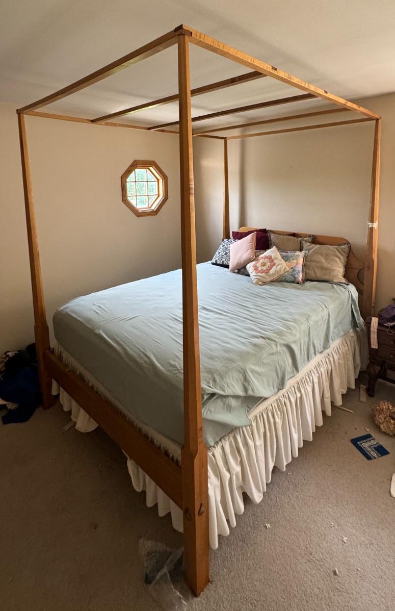 Maple Queen canopy bed , beautiful construction, quality mattress