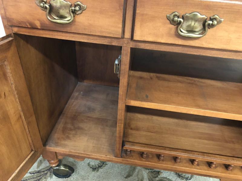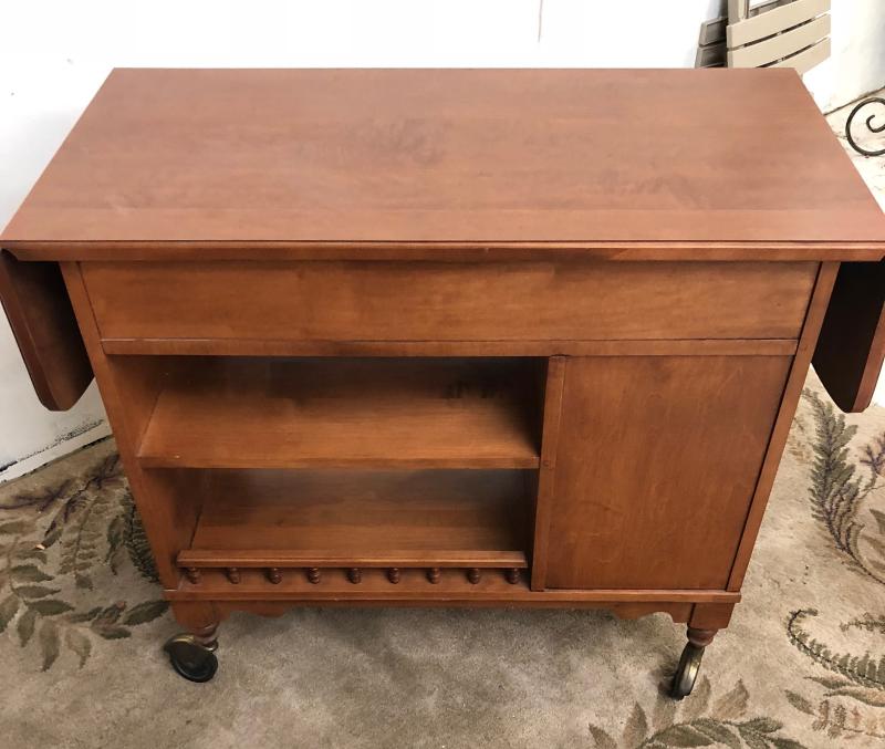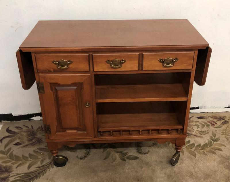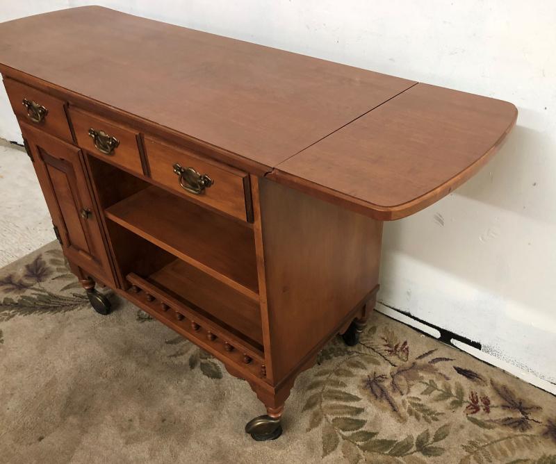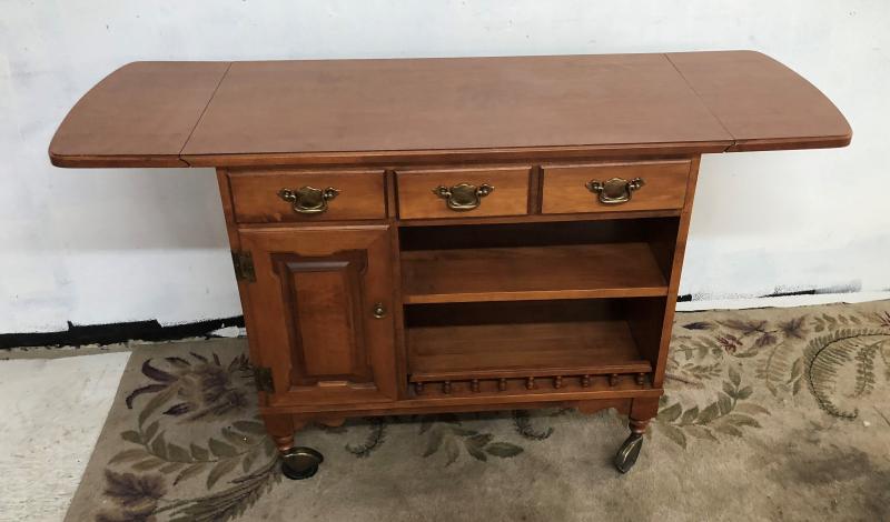 Colonial style maple wood tea cart server on wheels...Good condition..53 x18 x 31" approx dimensions...