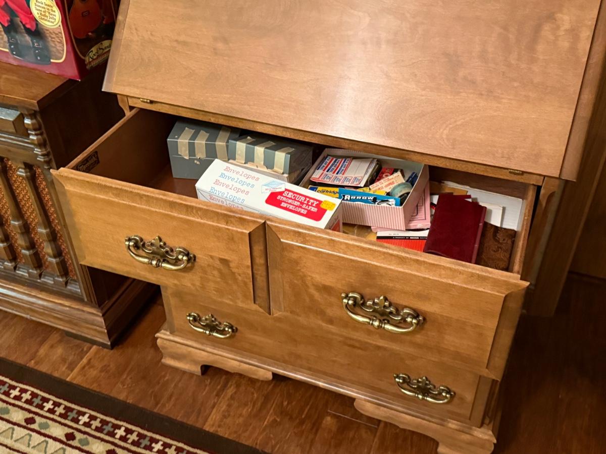 Maple Wood Drop front 3 drawer Desk by Meredith