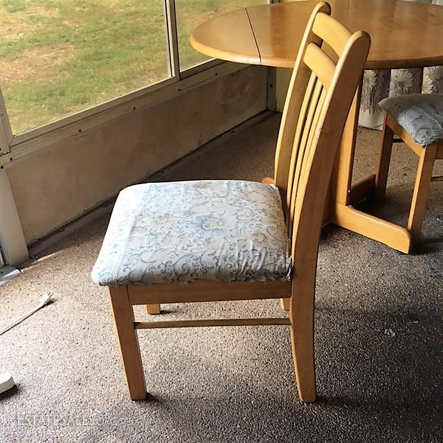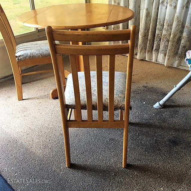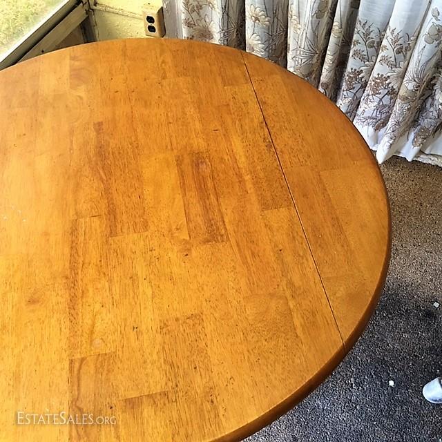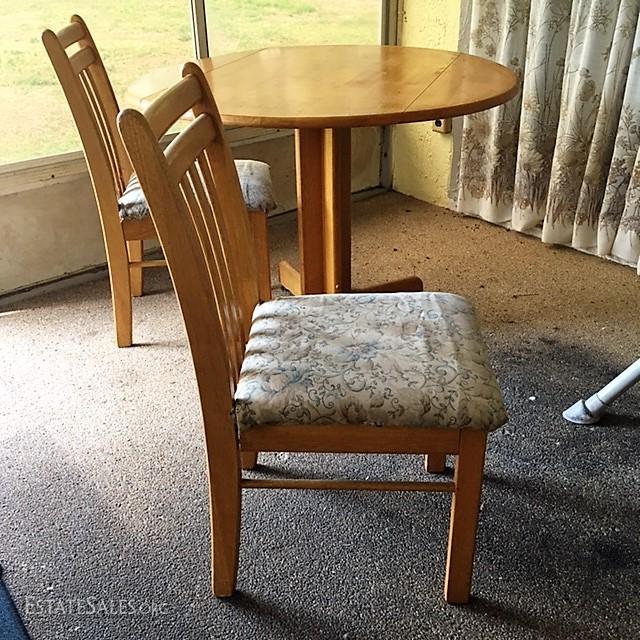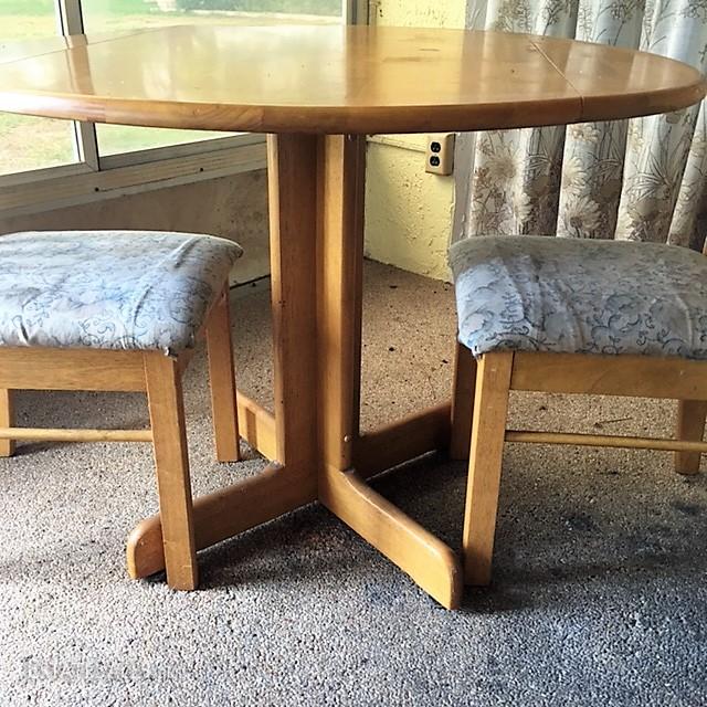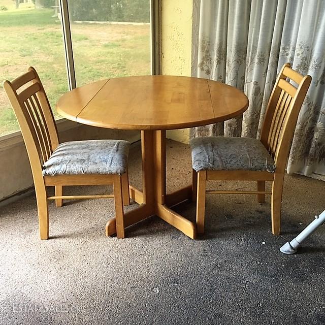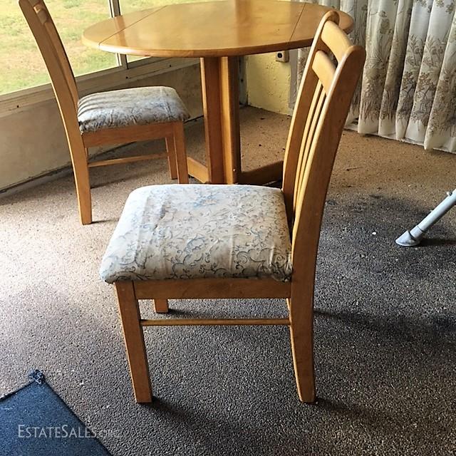 The table and chairs are in overall good condition. The chairs do have a slight wobble to them and the the padded seat while removable, do have a slight soil to them in areas. Dimensions of table: 41" in width, 31" in height. Any items surrounding the picture of these pieces are not part of the auction of the table and chairs.