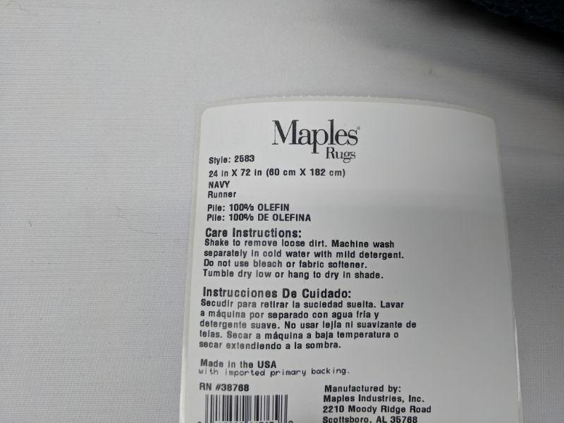 Maples Navy Rug 24" x 72" - New