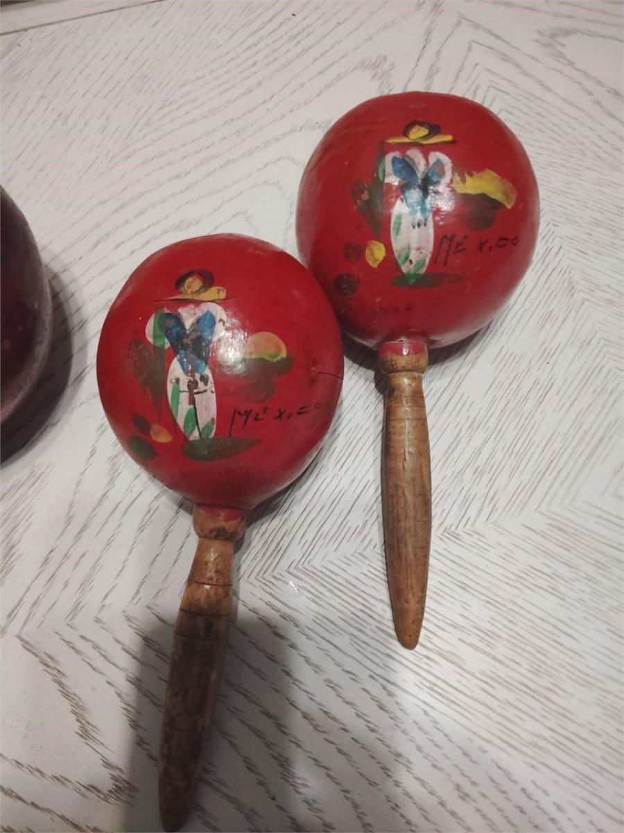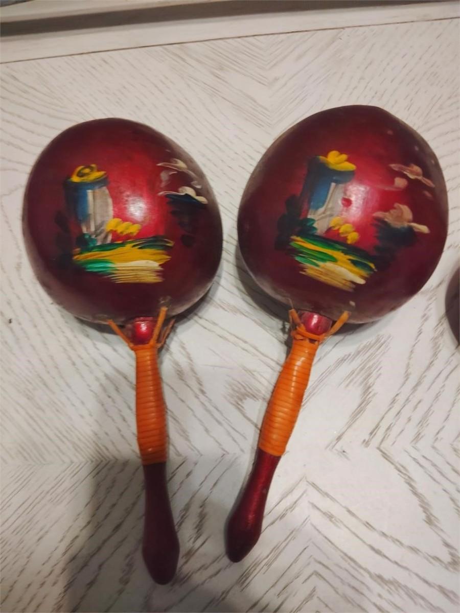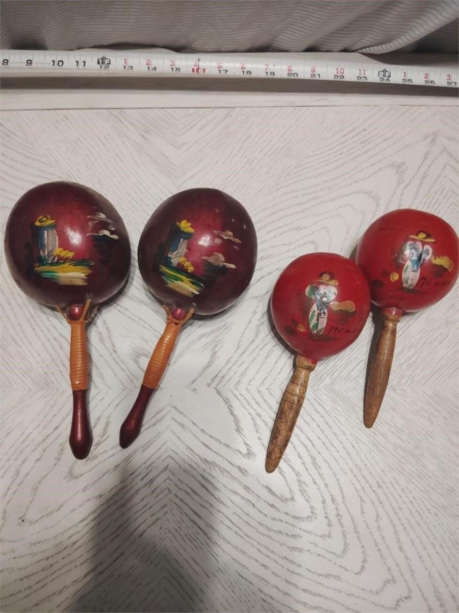 Mexico Hand-Painted Vintage Maraca 2 Sets