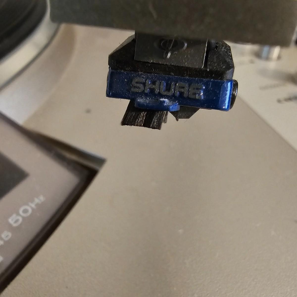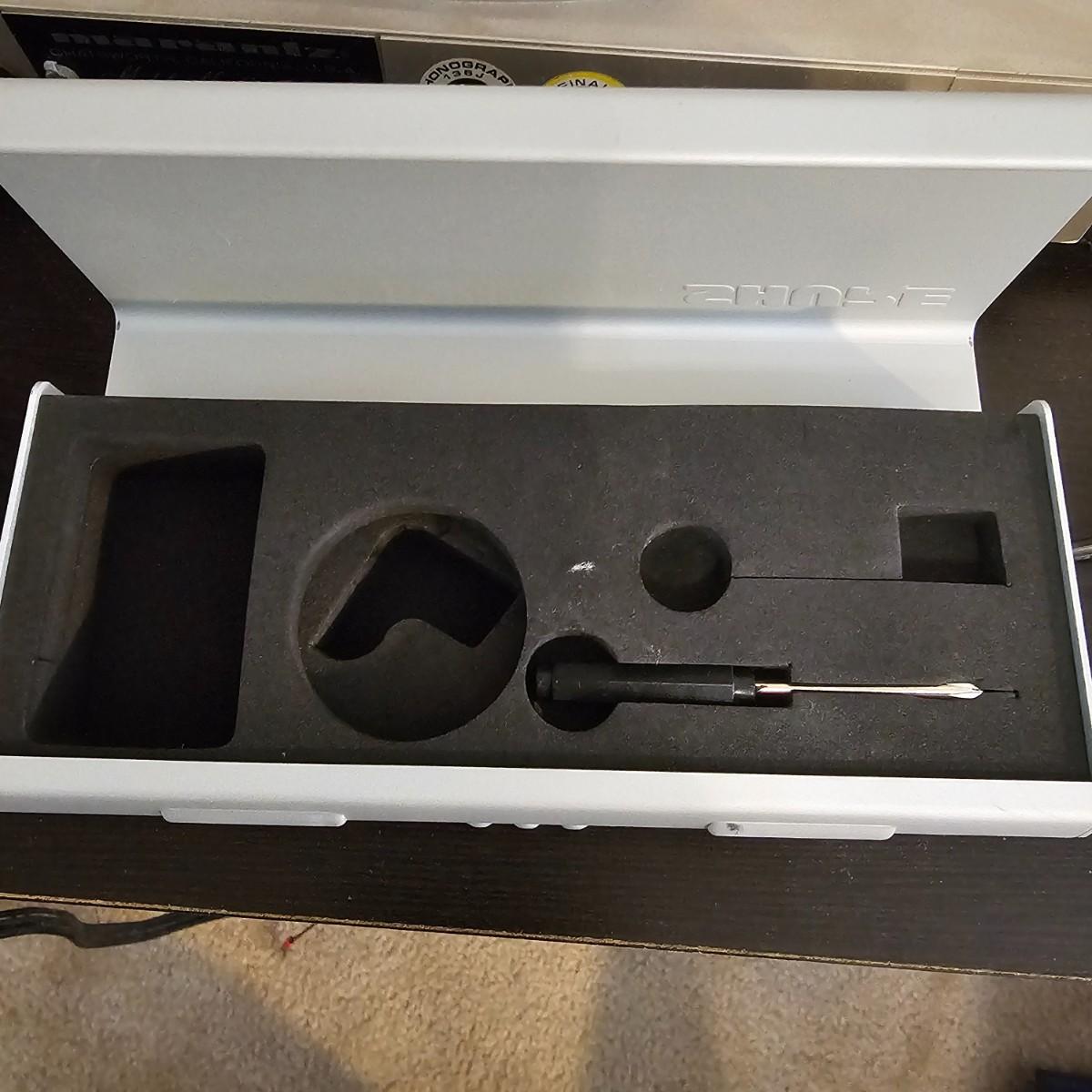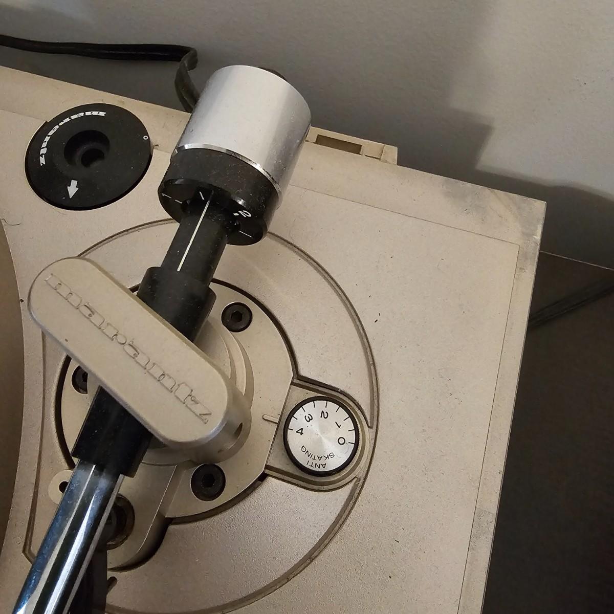 Classic Marantz turntable, has smoke tinted cover and 45rpm adapter. Tonearm has a Shure cartridge installed, not certain which one. Unit measures 17.5" x 13.5" x 5"H, powered on when plugged in. Also includes an aluminum case which probably held the cartridge, and a bag with a small screw, purpose unknown. See photos for details. Local pickup only.