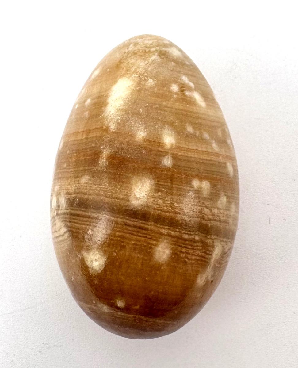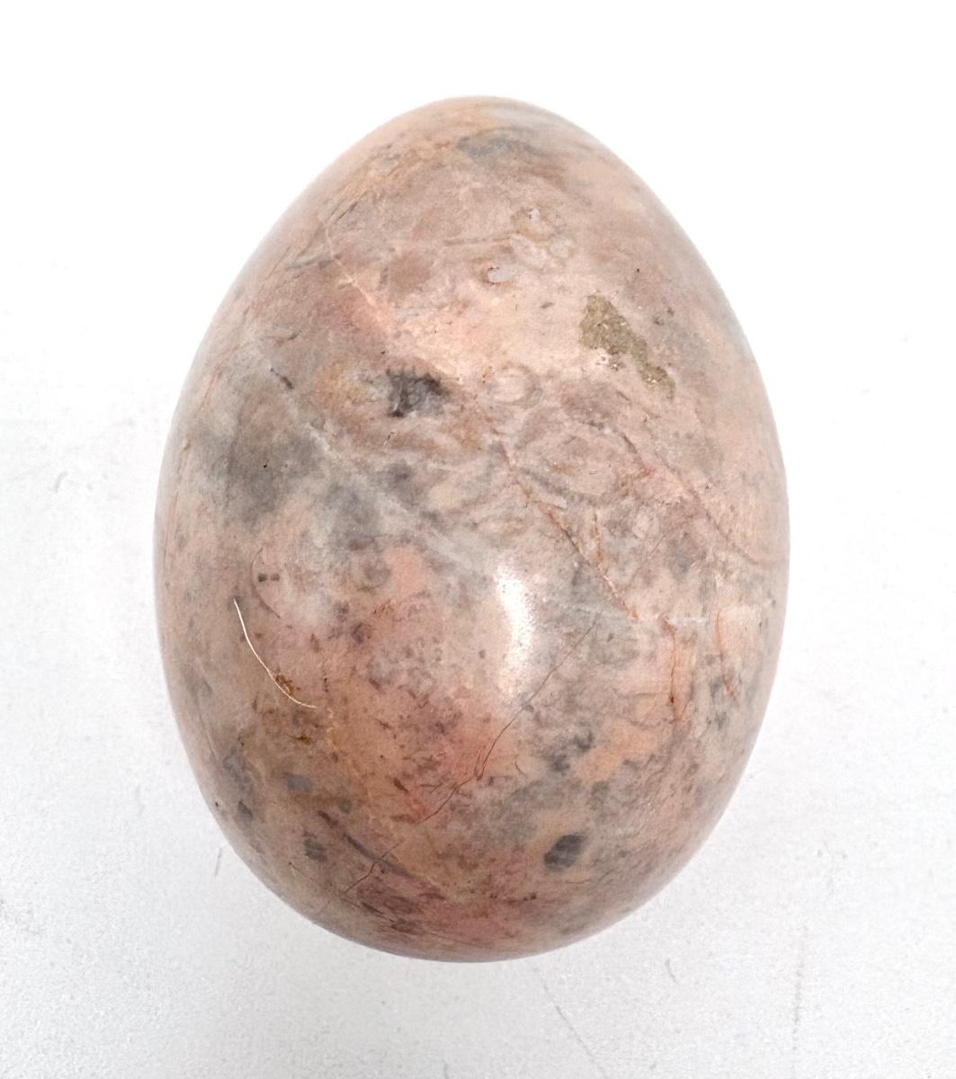 Ashtray is 10” diameter. Brown speckled egg is 3” tall. Tan egg is 2-7/8” tall. Pink and blue egg is 2-1/2” tall. Light pink egg is 2-3/4” tall.