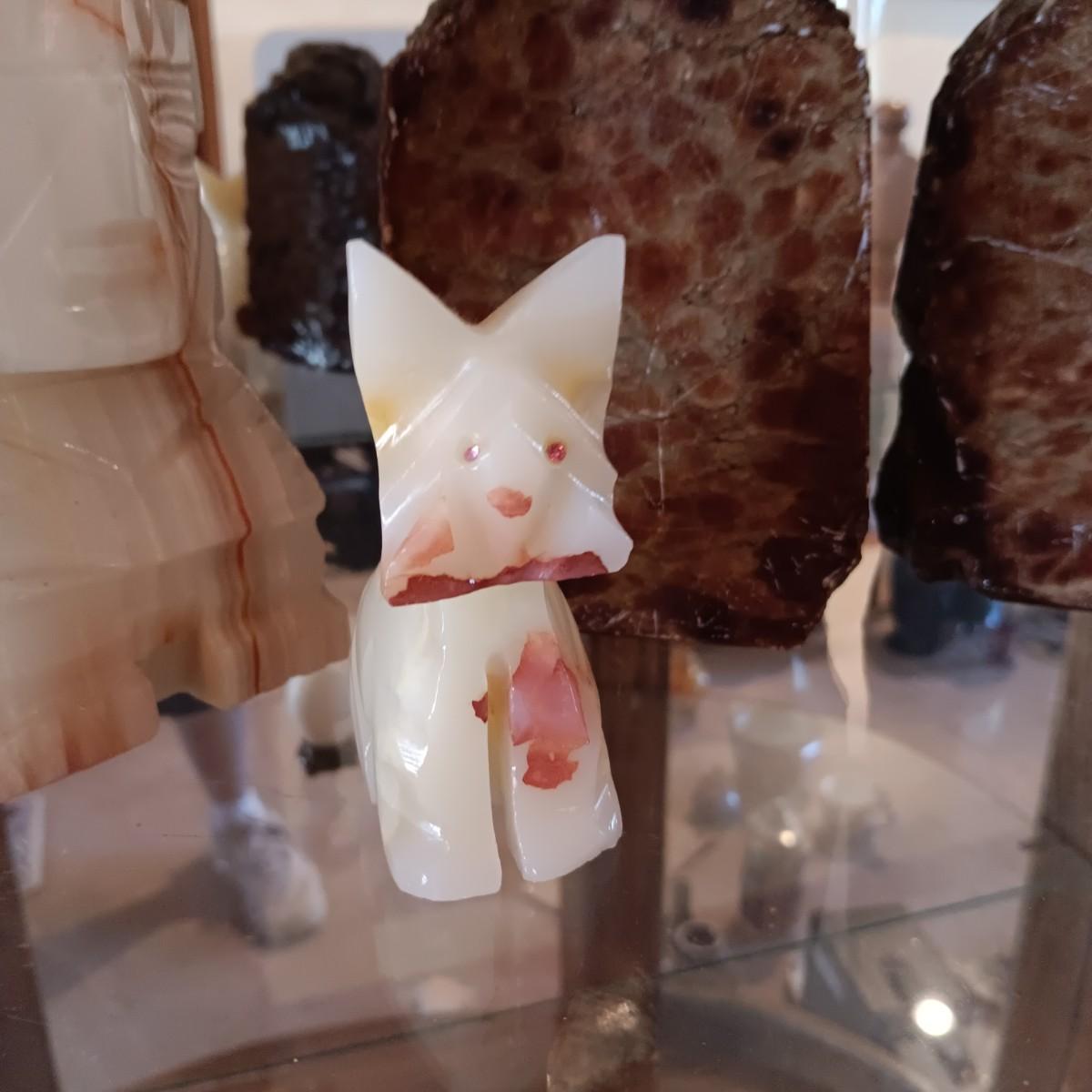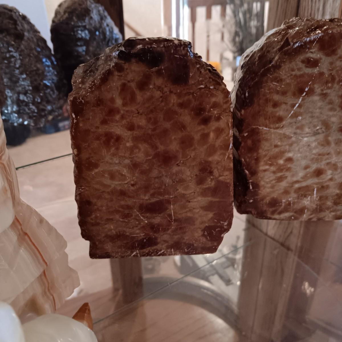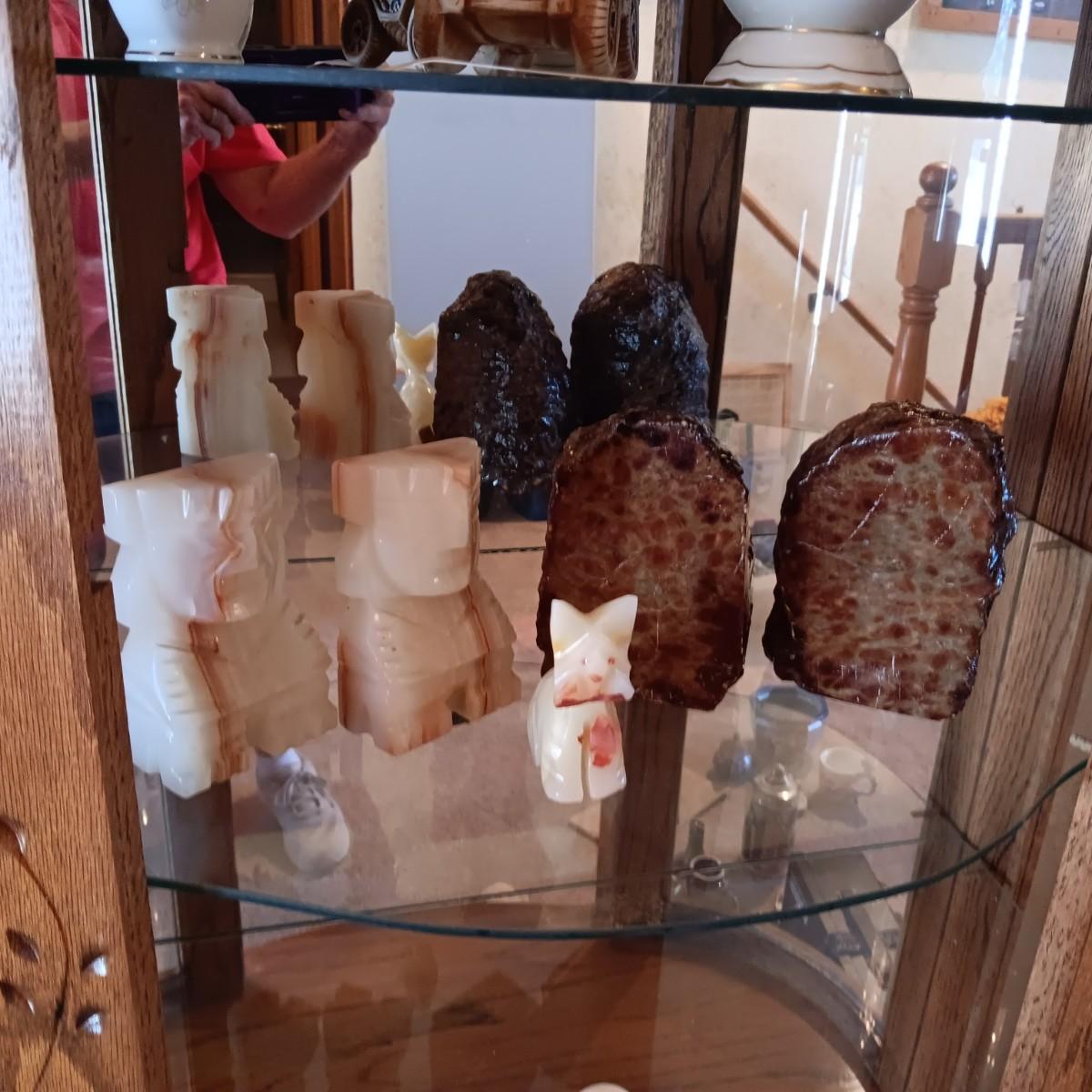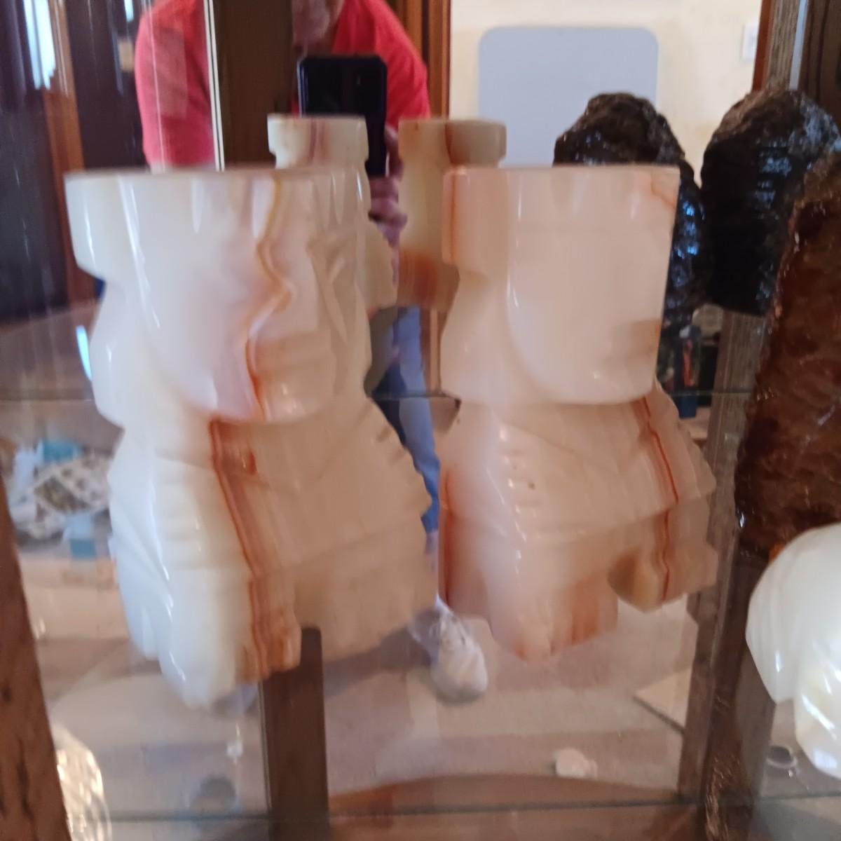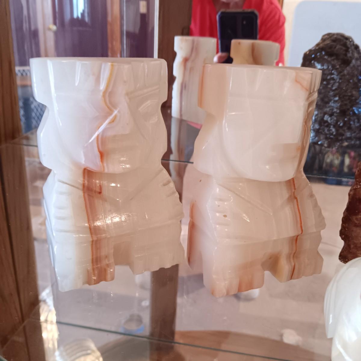 MARBLE AZTEC AND ROCK BOOKENDS PLUS A MARBLE DOG
