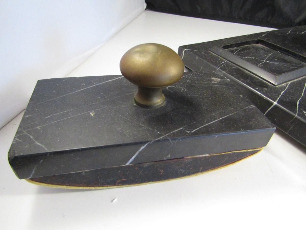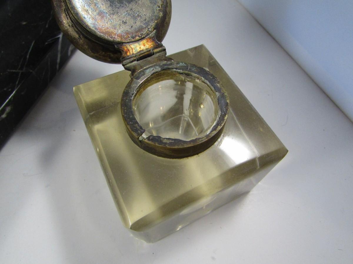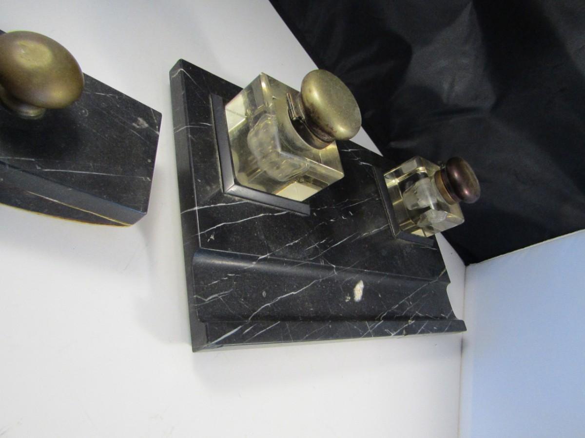 Marble Base Double Glass Inkwell and Stamp Desk Set