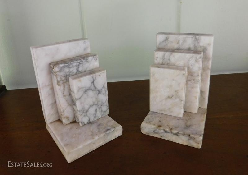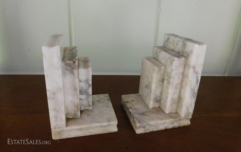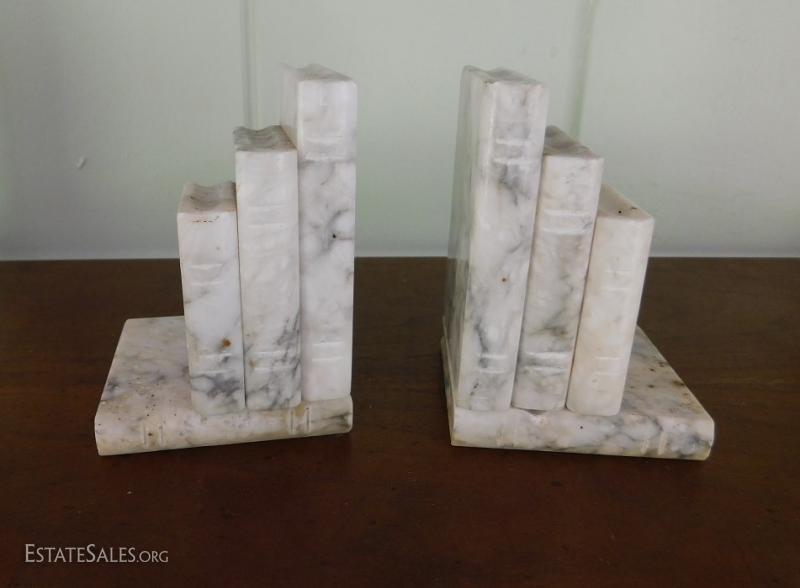 Marble book ends shaped like books. Good condition with a minor chip on marble base.