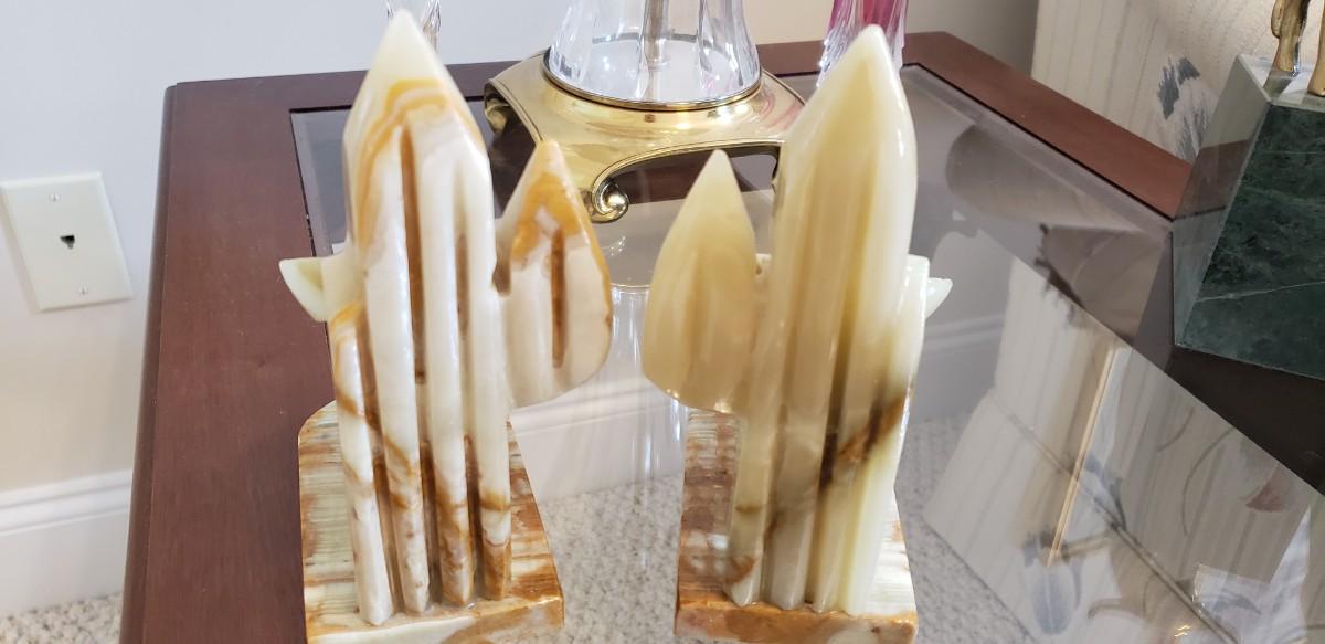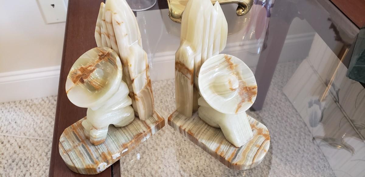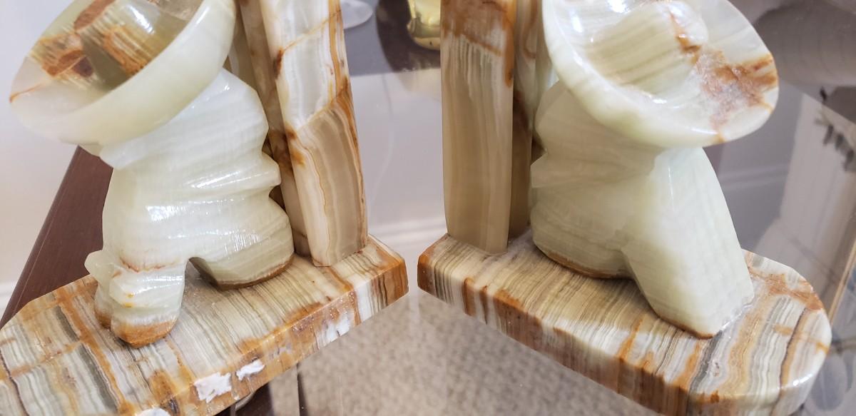 Vintage marble bookends. Man with Sombrero sitting by Cacti