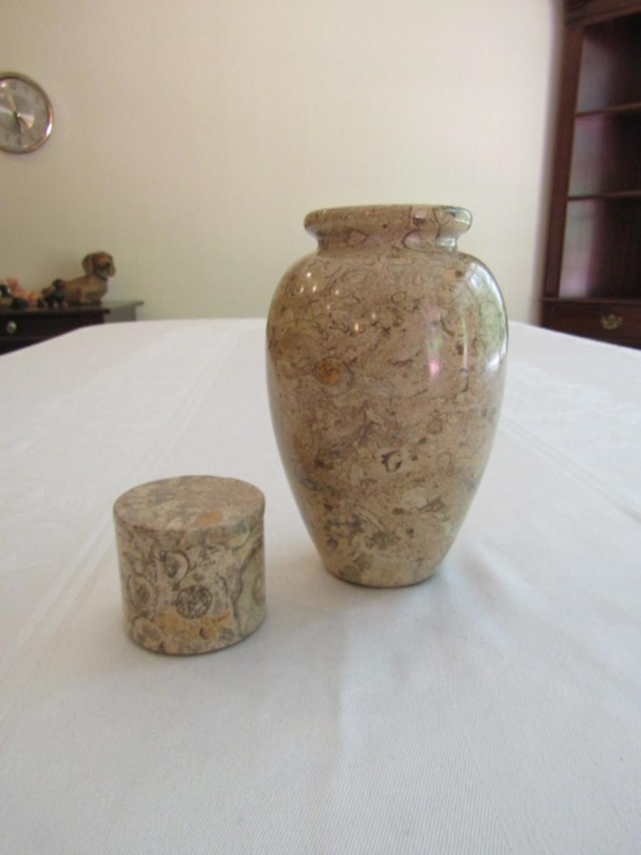 Marble Home Decor- Vase and Trinket Box. Vase is approx 6" tall.