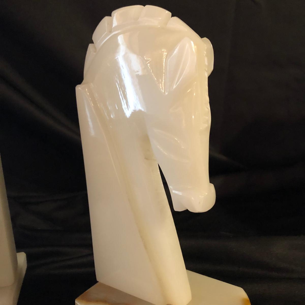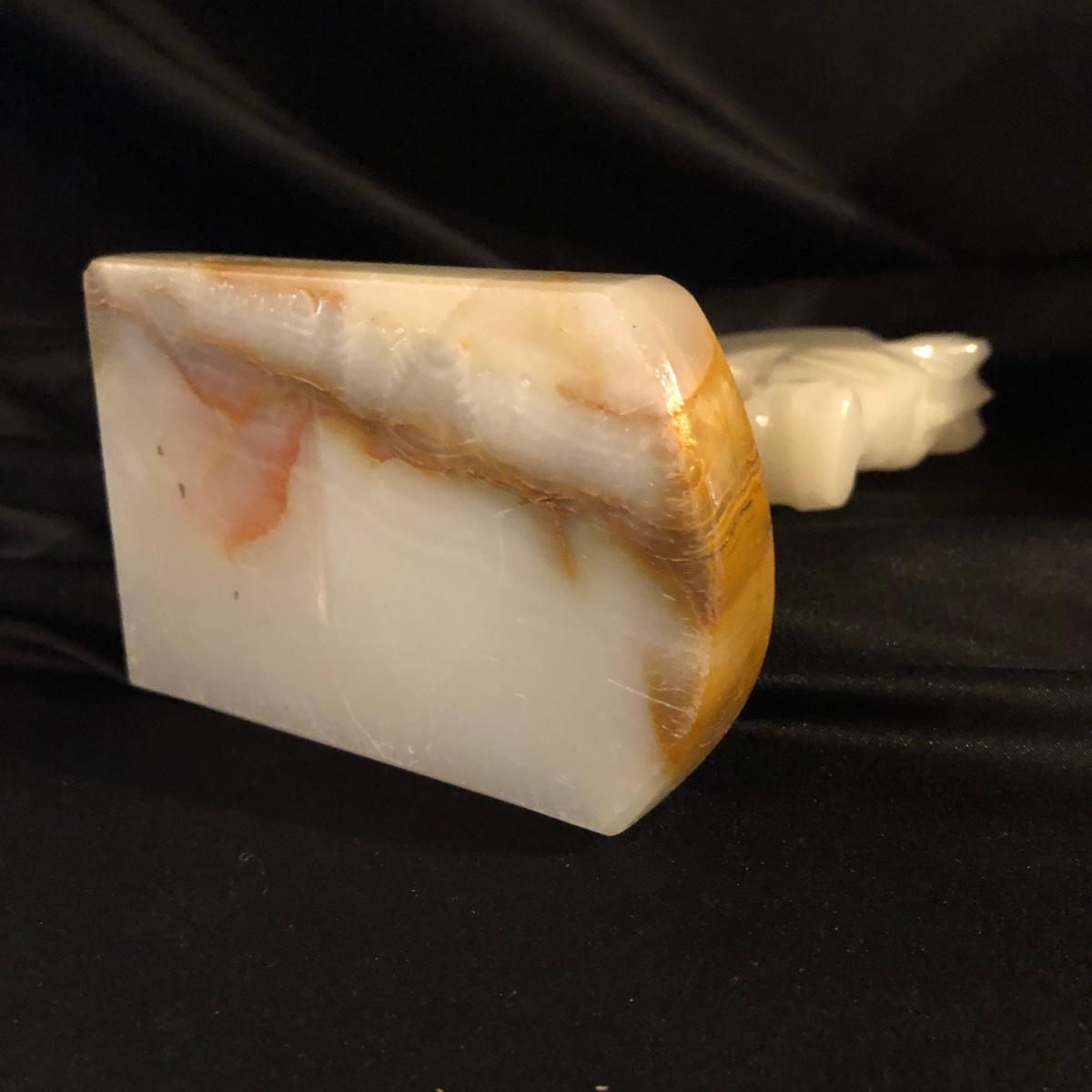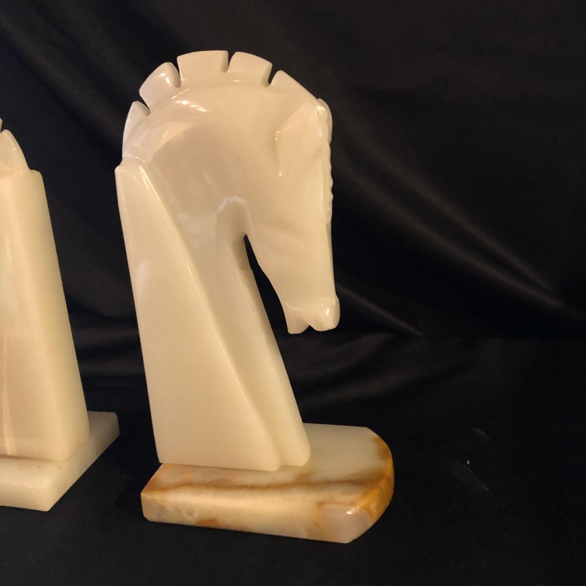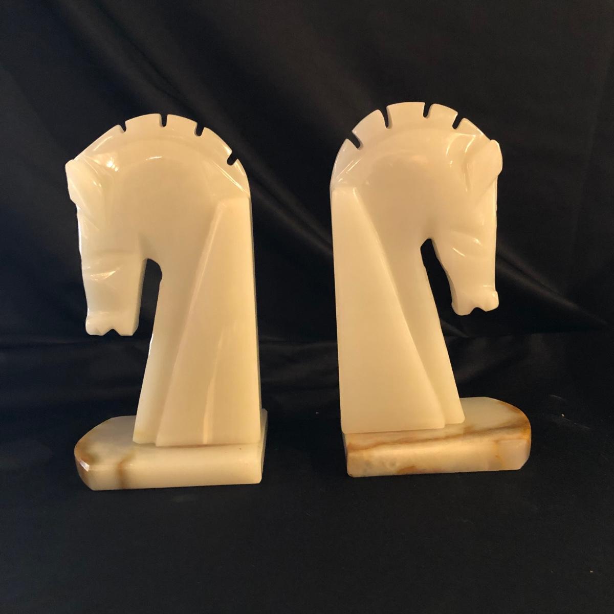 The marble bookends are brown and white marble. They measure 4.5” x 3” x 8”. Shipping Available.