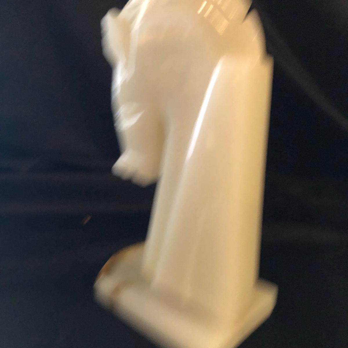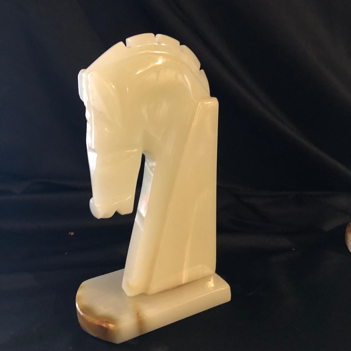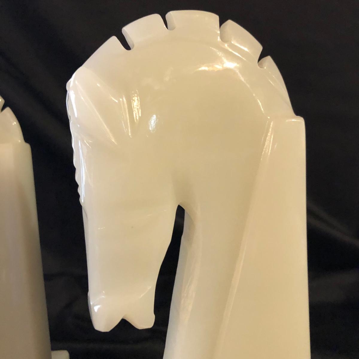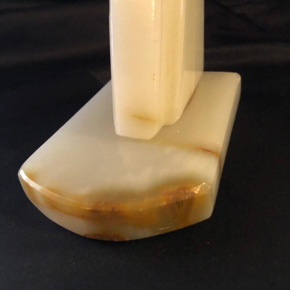The marble bookends are brown and white marble. They measure 4.5” x 3” x 8”. Shipping Available.
