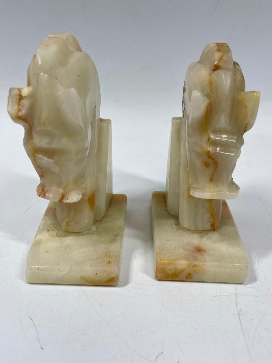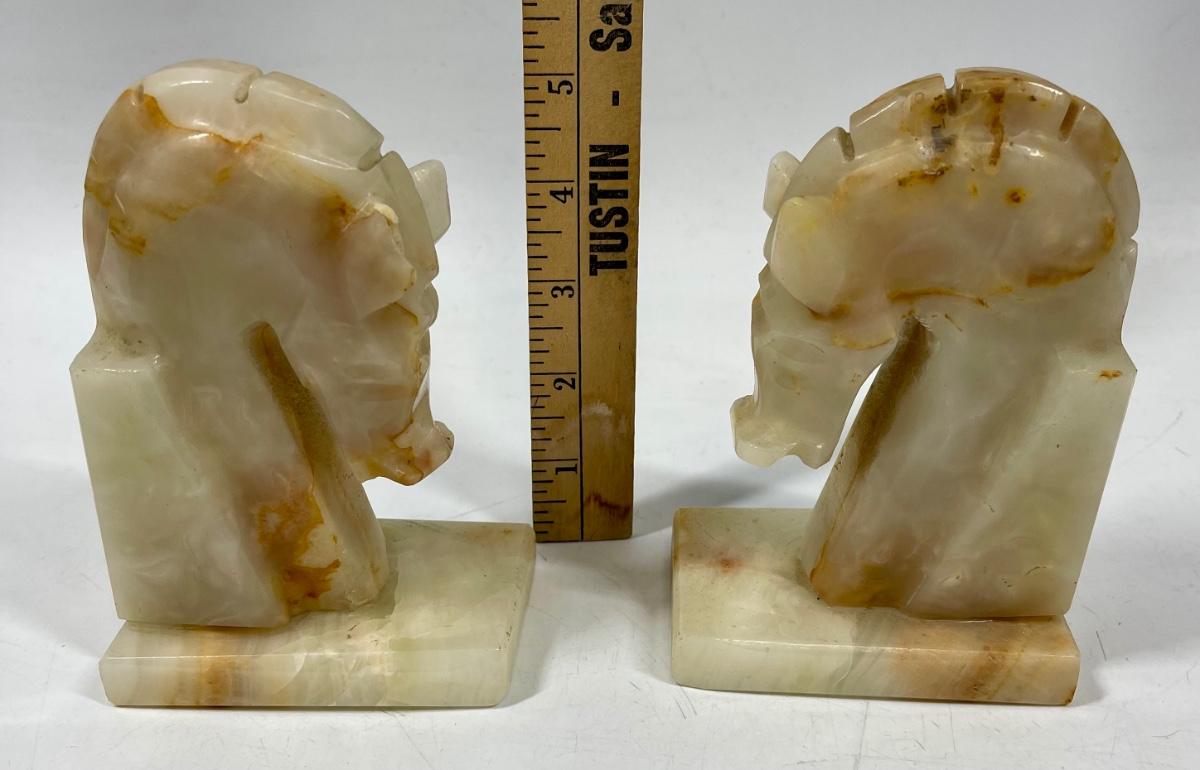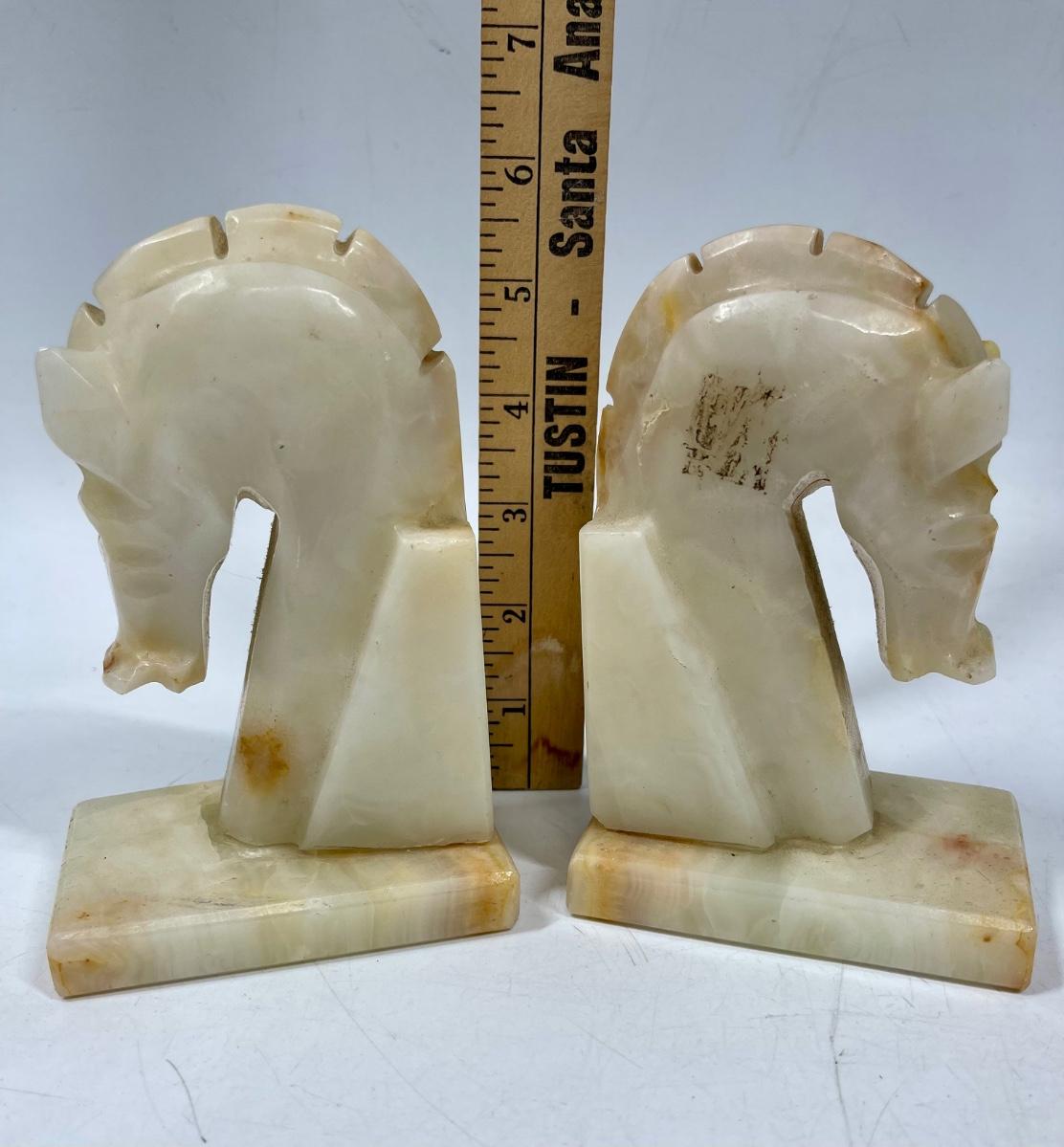 These bookends are in fair condition, but one horse has a broken ear and a loose screw.