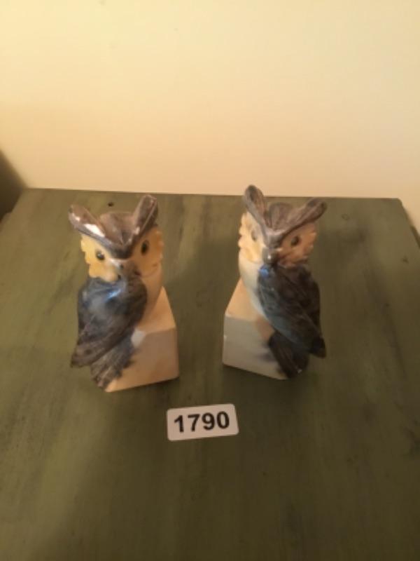 Marble owl bookends lot1790