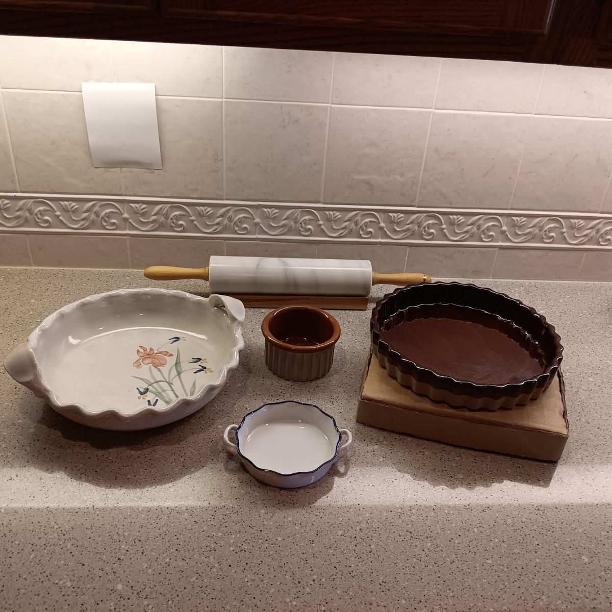 MARBLE ROLLING PIN, CLAY PIE PLATES AND MORE