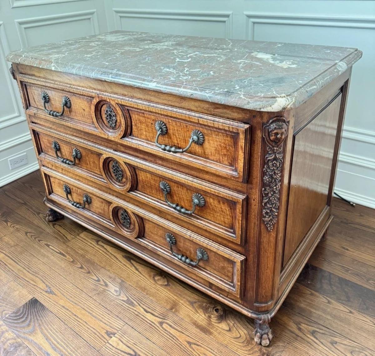 Antique 19th Century Louis XV French Provincial Marble Top Chest of Drawers Commode 48" x 36" x 23"