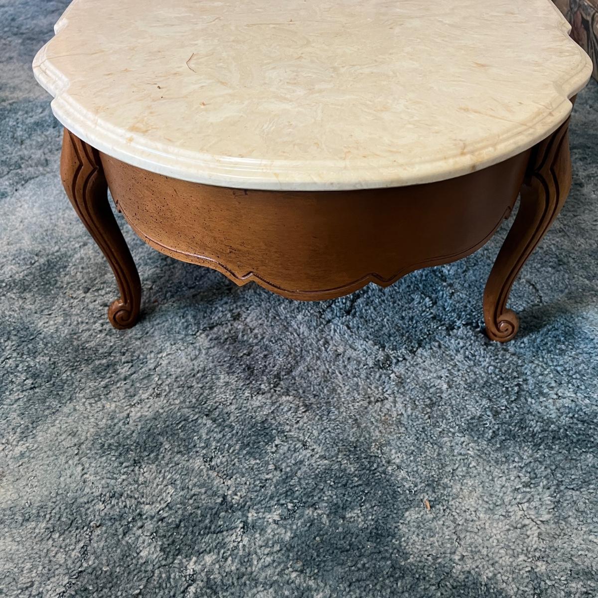 This table has 2 matching end tables lot 126. Buying "as is - as found" in this wonderful estate. See ALL PHOTOS for content, condition, & dimensions. NEVER a Buyer's Premium or Credit Card Fee added.