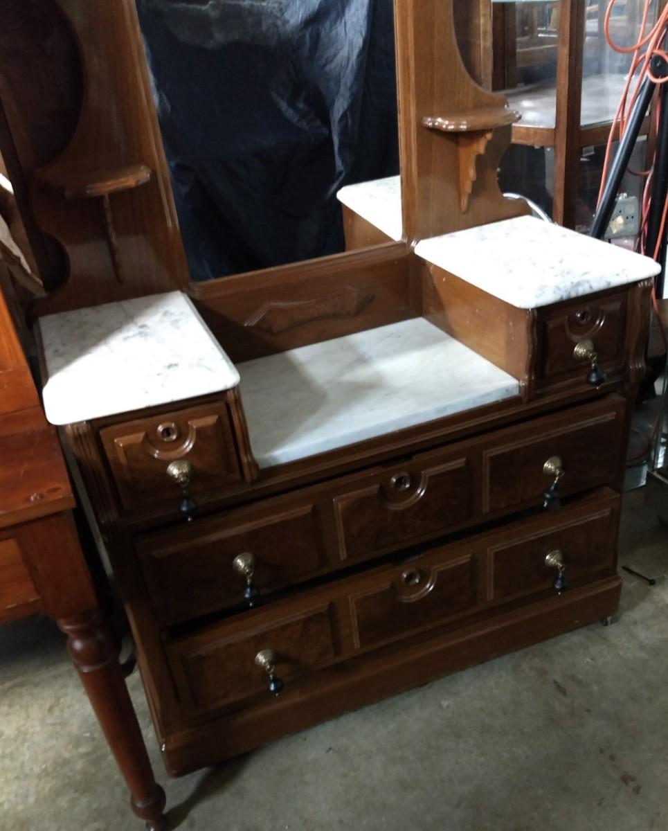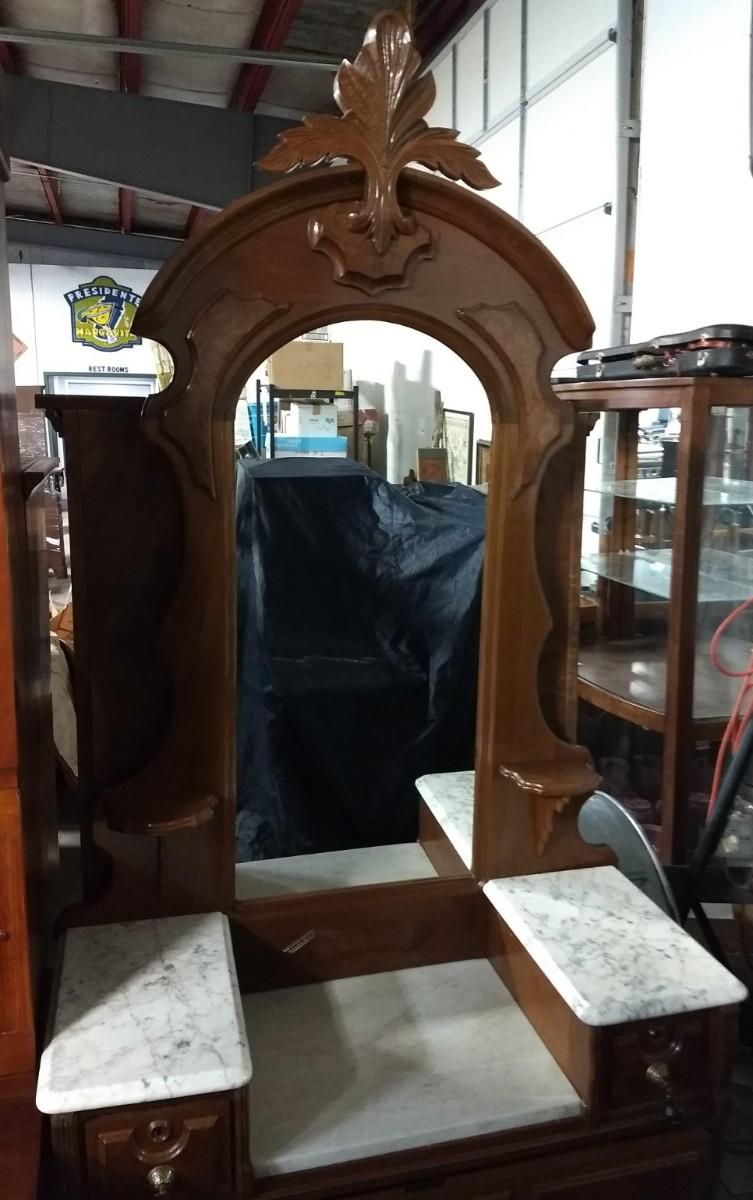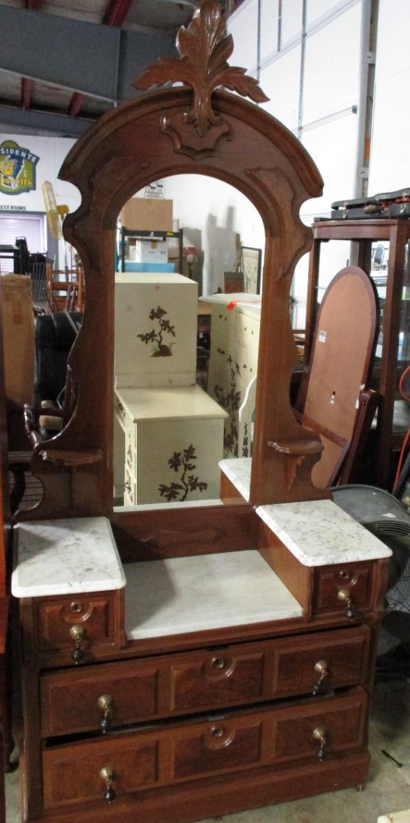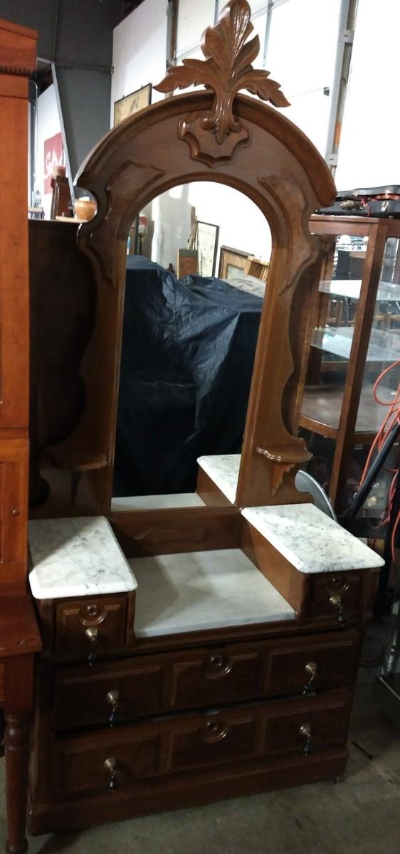 Antique Eastlake Marble Top Dressing Table with Mirror 40" x 16" x 84"