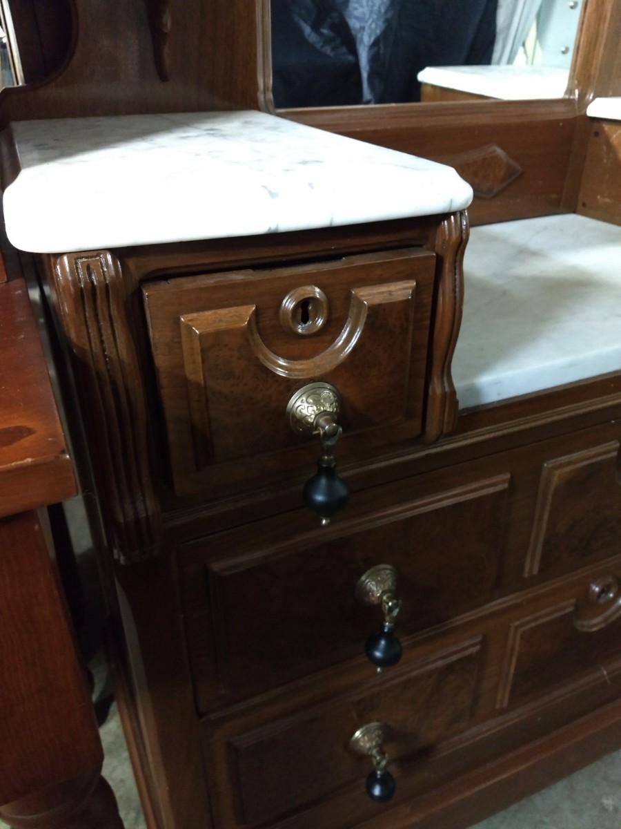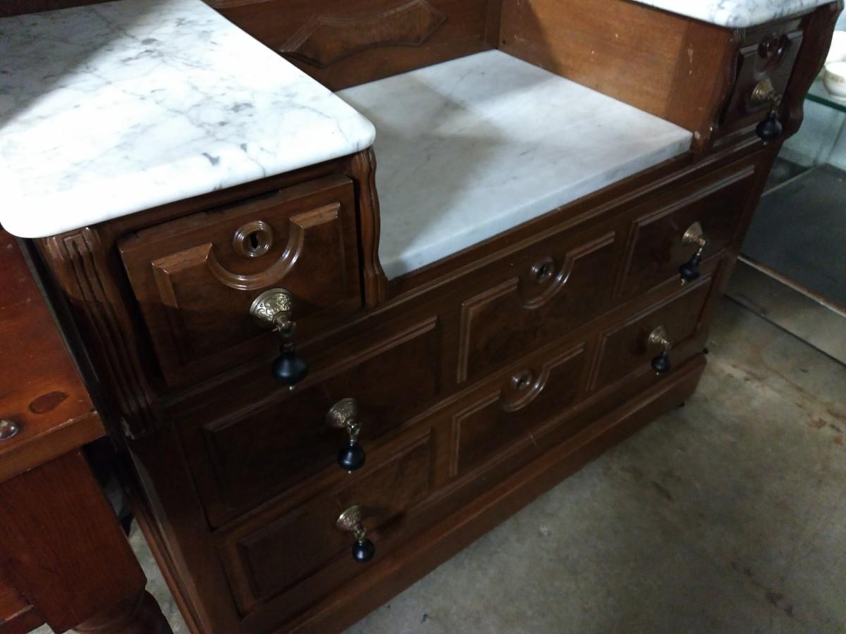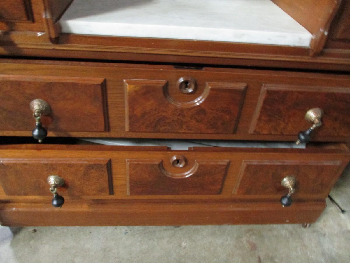 Antique Eastlake Marble Top Dressing Table with Mirror 40" x 16" x 84"