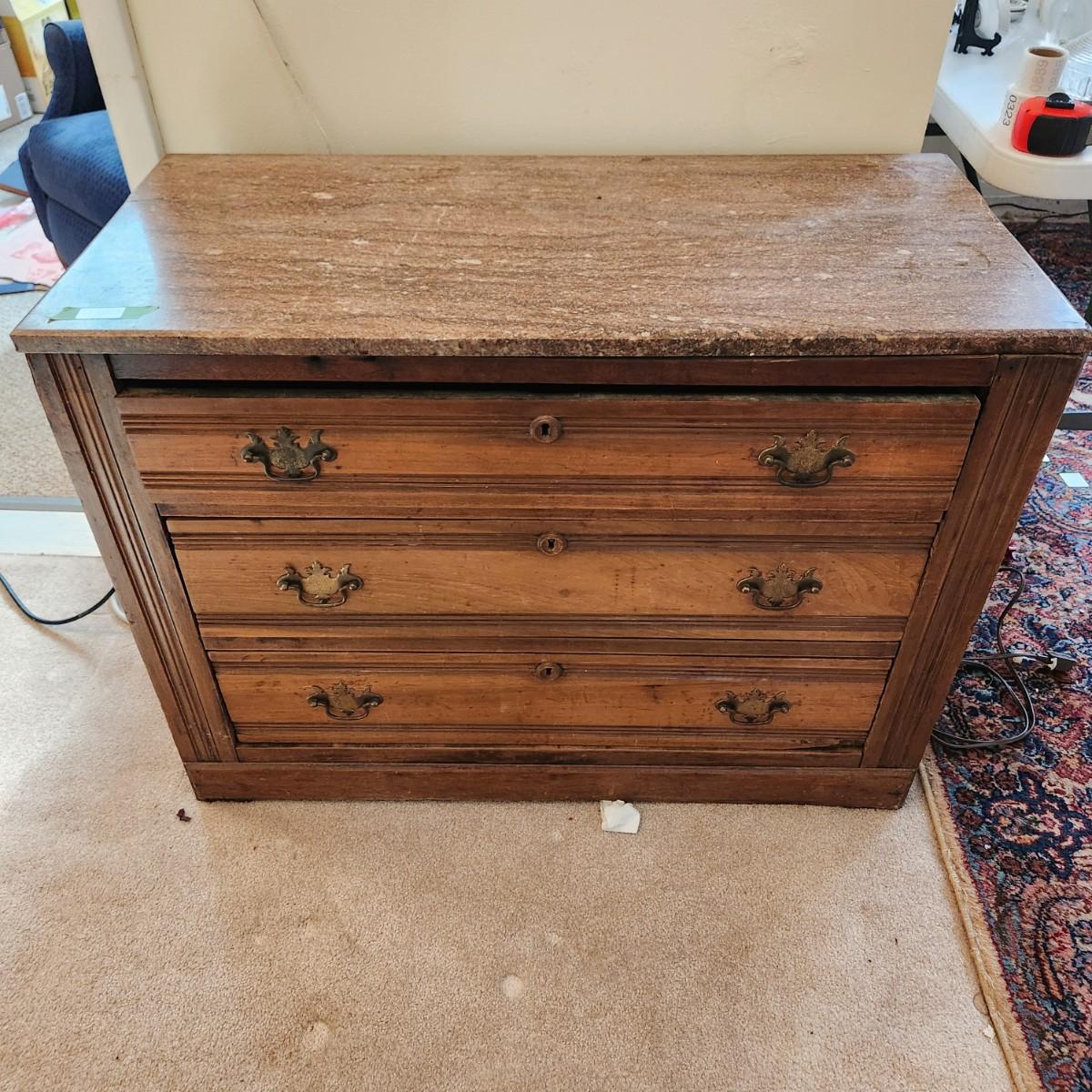 Marble Top Eastlake 3 Drawer Chest 39x18x28