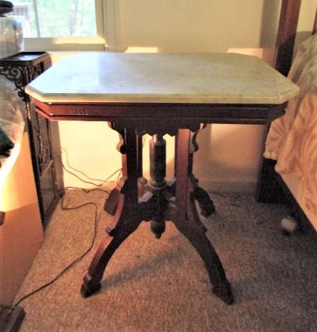 Marble Top Eastlake Style Table- Approx 28" x 20" x 28 1/4" (Large)