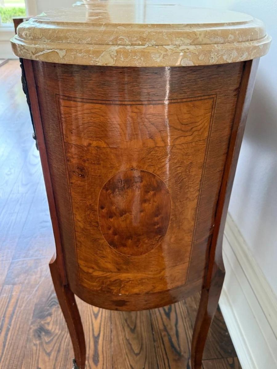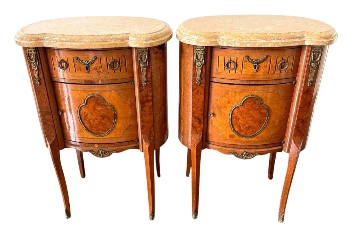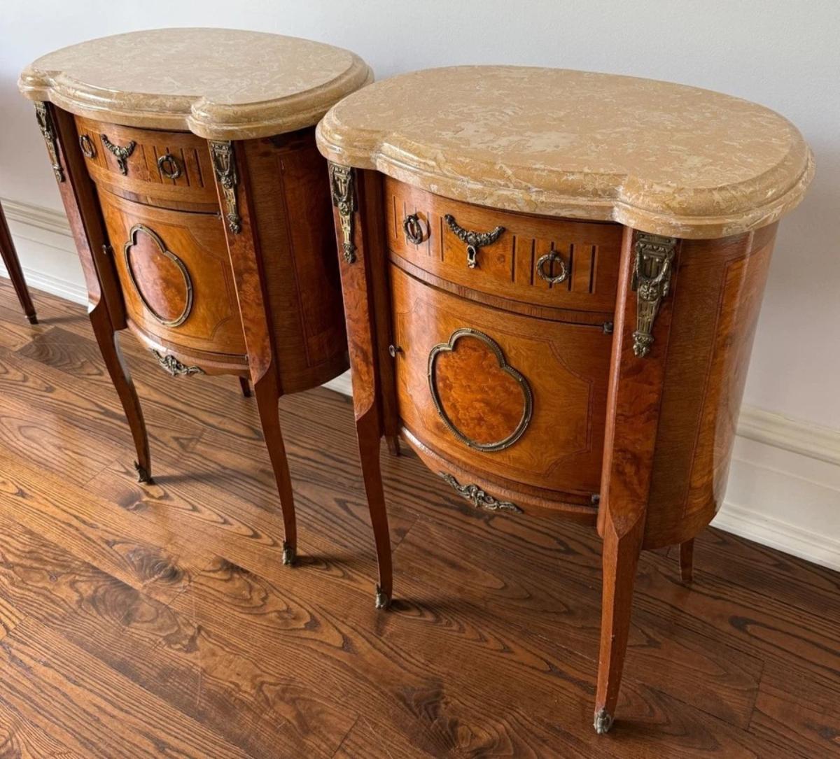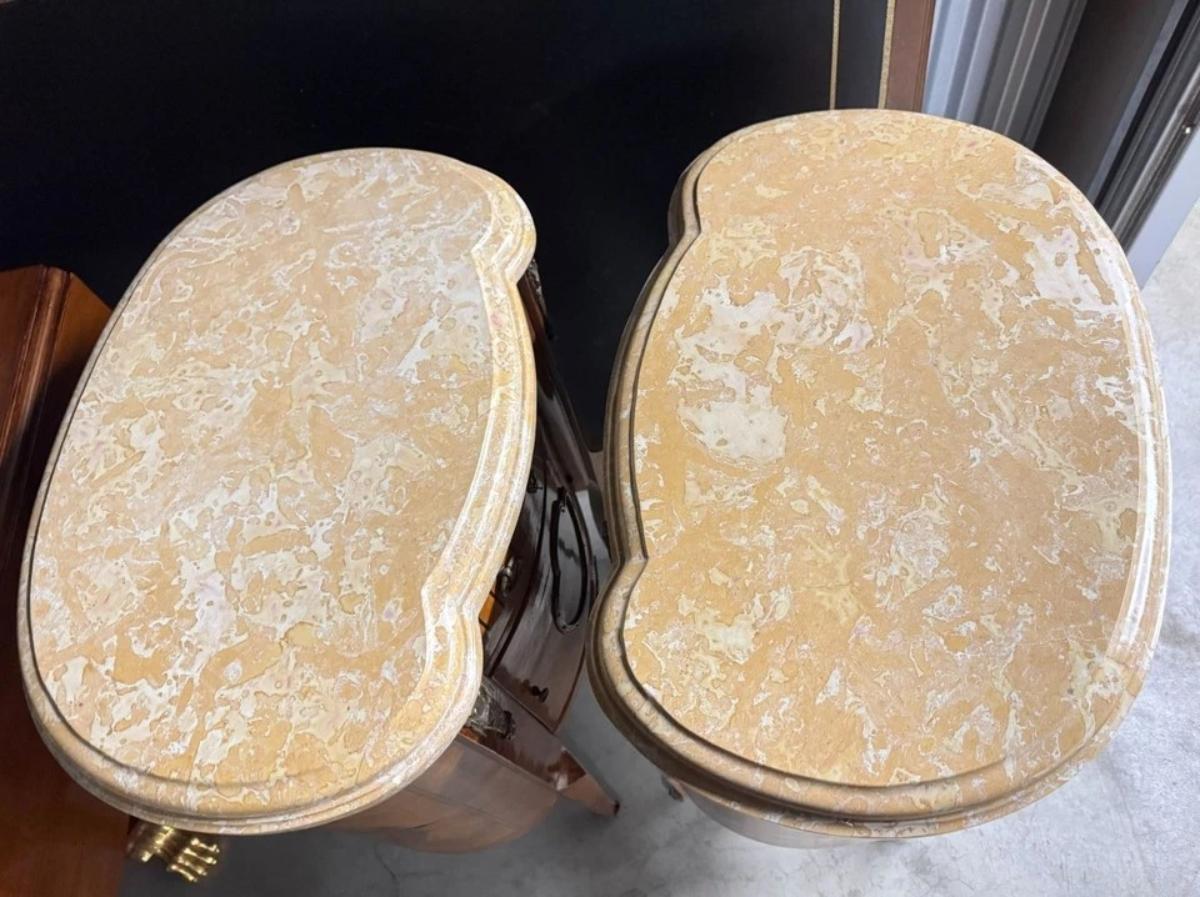 Marble Top Ormolu French Louis XV Nightstands Accent Tables