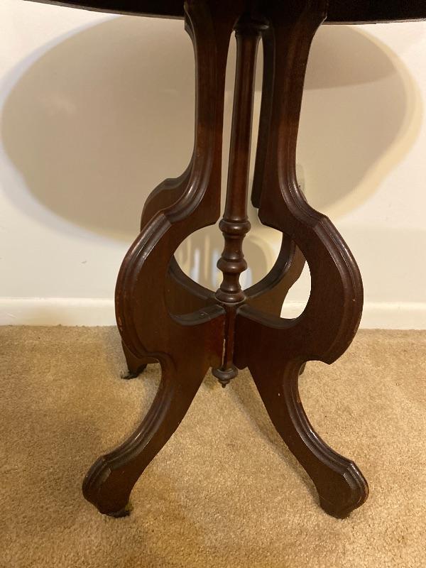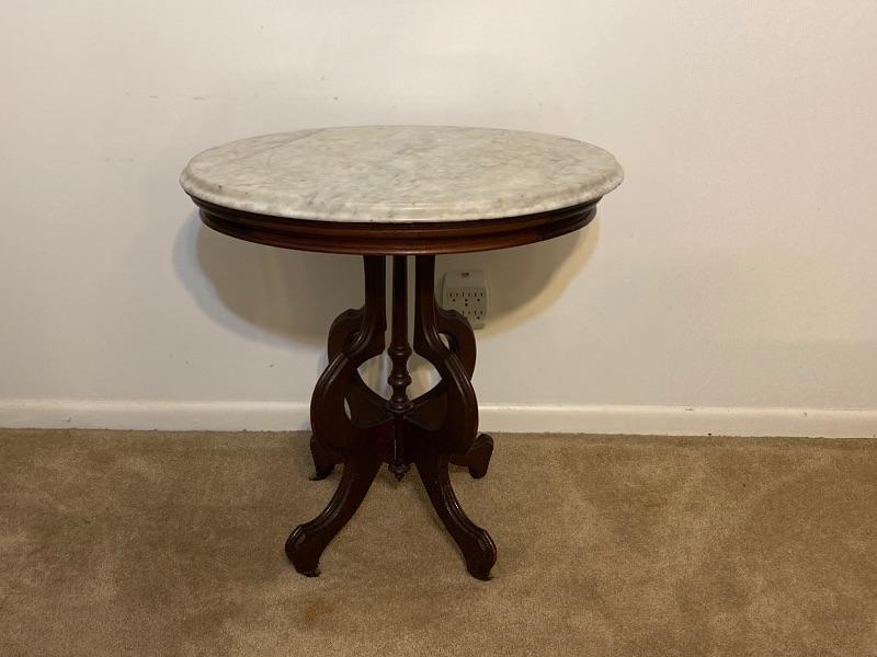 Vintage Marble Top Oval Wood Table * See Details