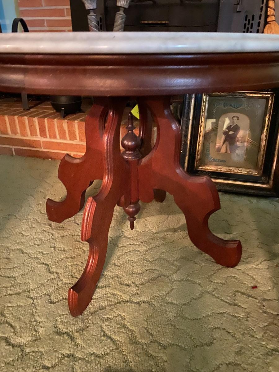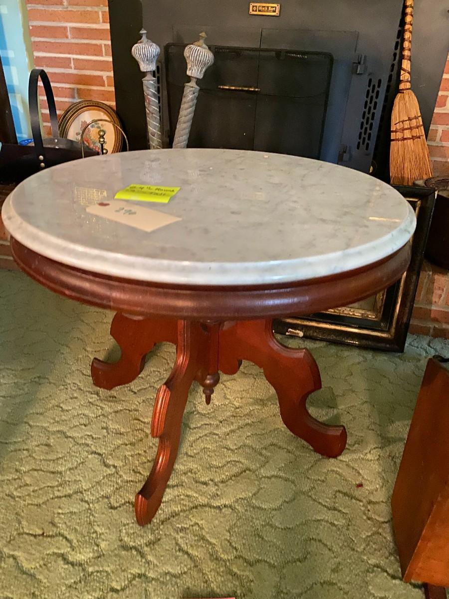 LOT 296 Marble Top Round Victorian Coffee Table 24x19t