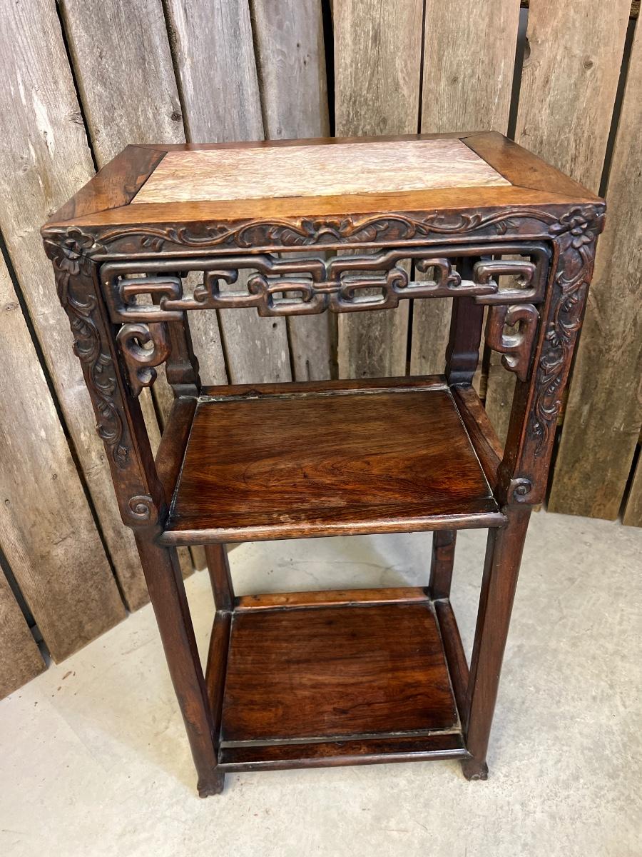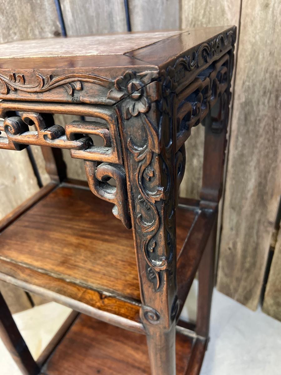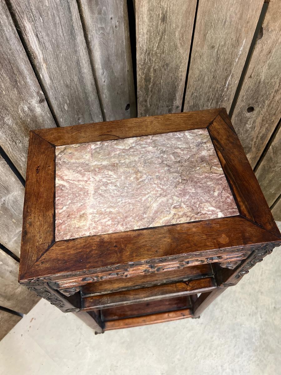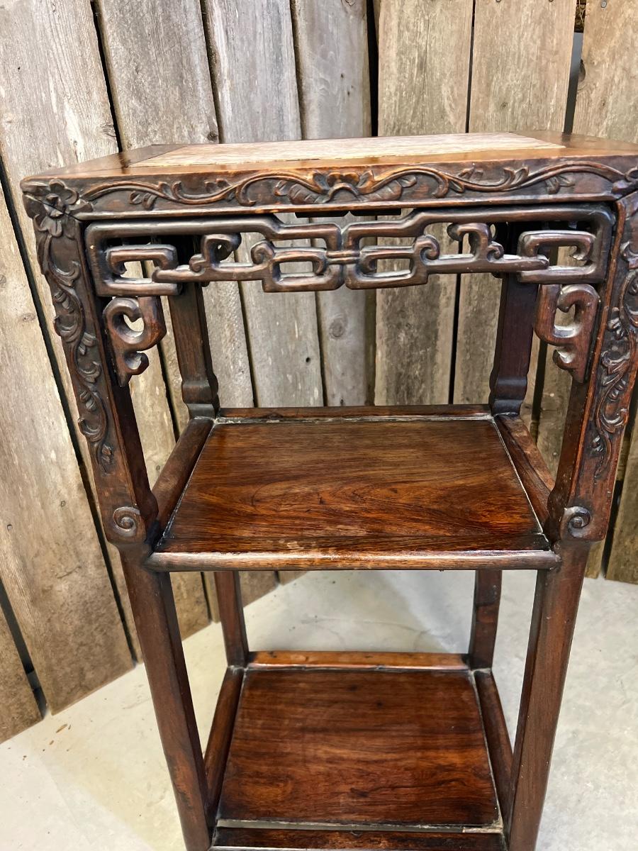 19th Century Asian Carved Wooden and Marble Side Table or Stand
