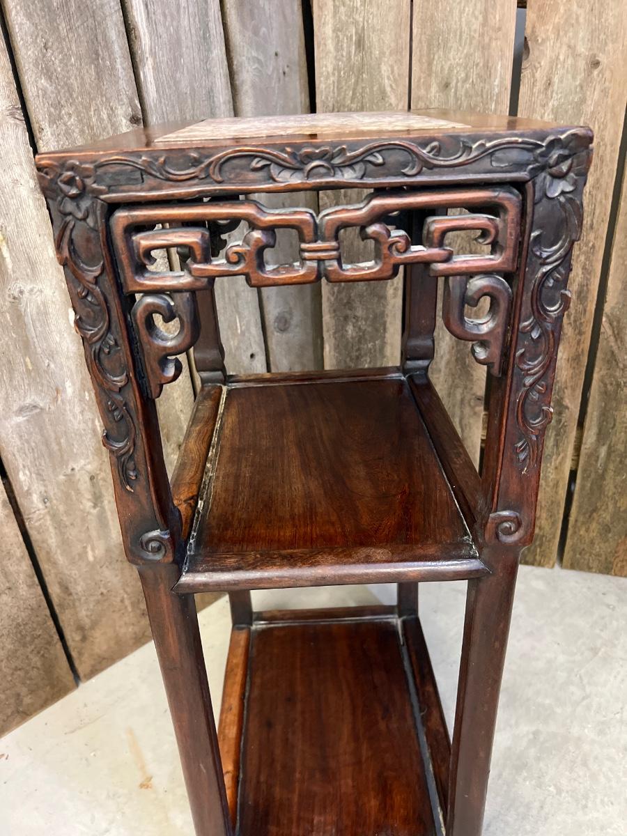 Late 19th Century handcarved ROSEWOOD Japanese wood and marble top side table or stand for sculpture, plant, lamp or other room decoration. See pictures for condition. Listed on 1st Dibs at $1,200.