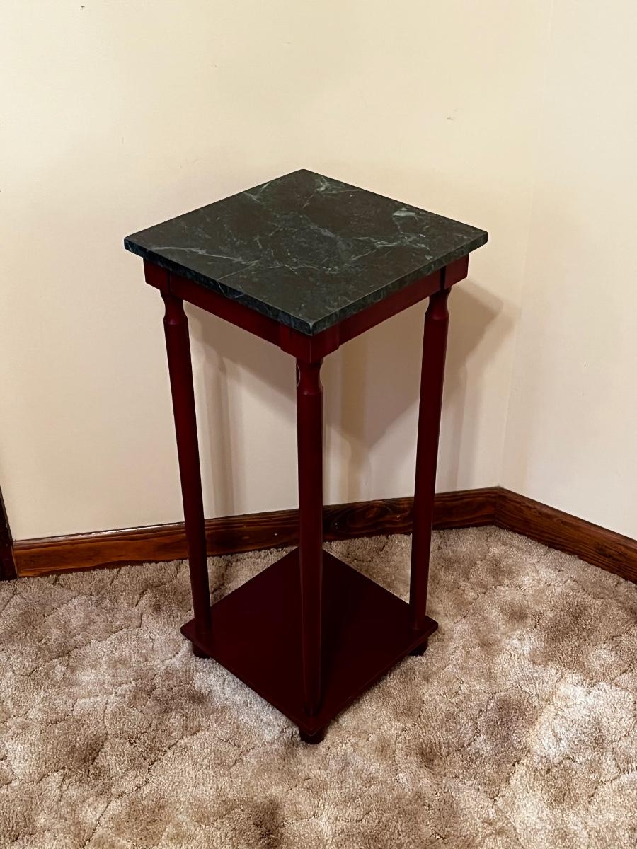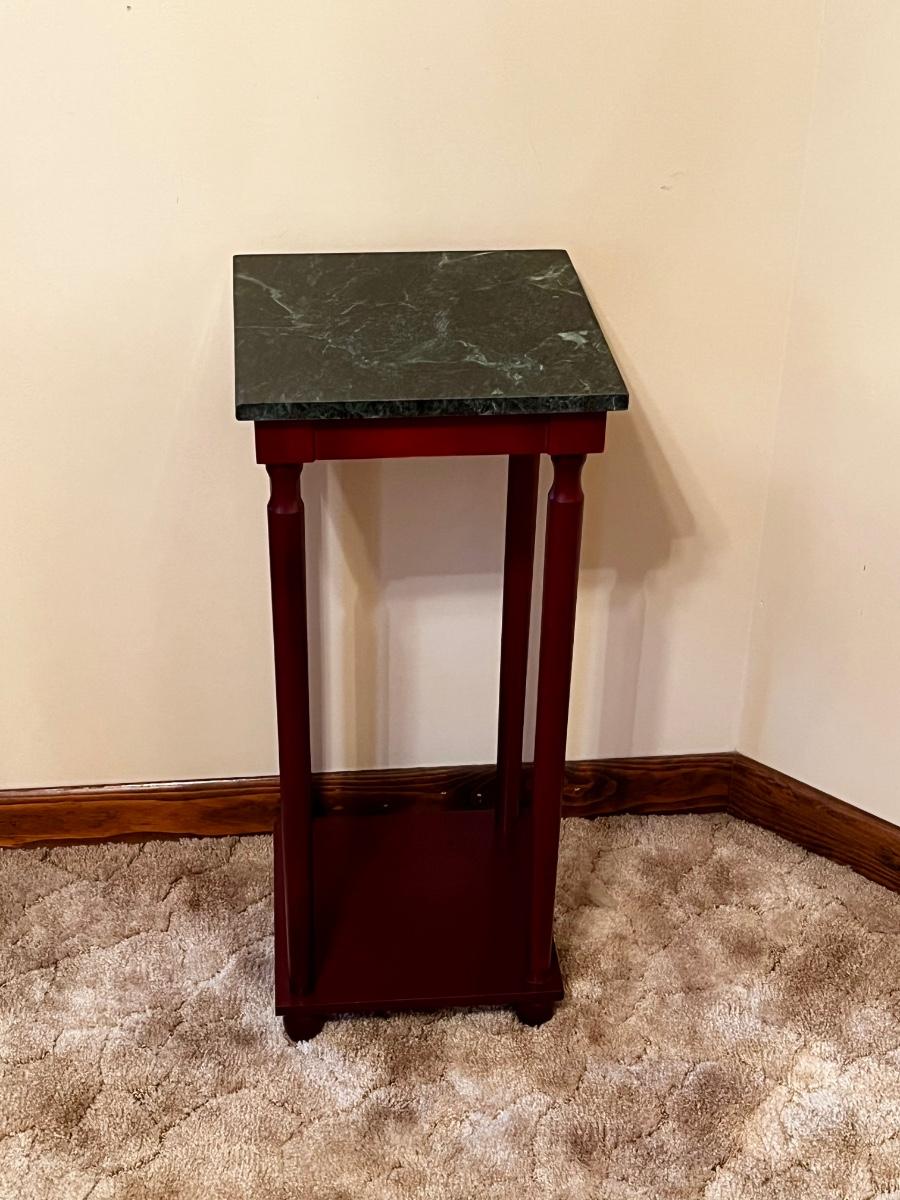 Cherry & Green Marble Top Side Wooden Table / Plant Stand
