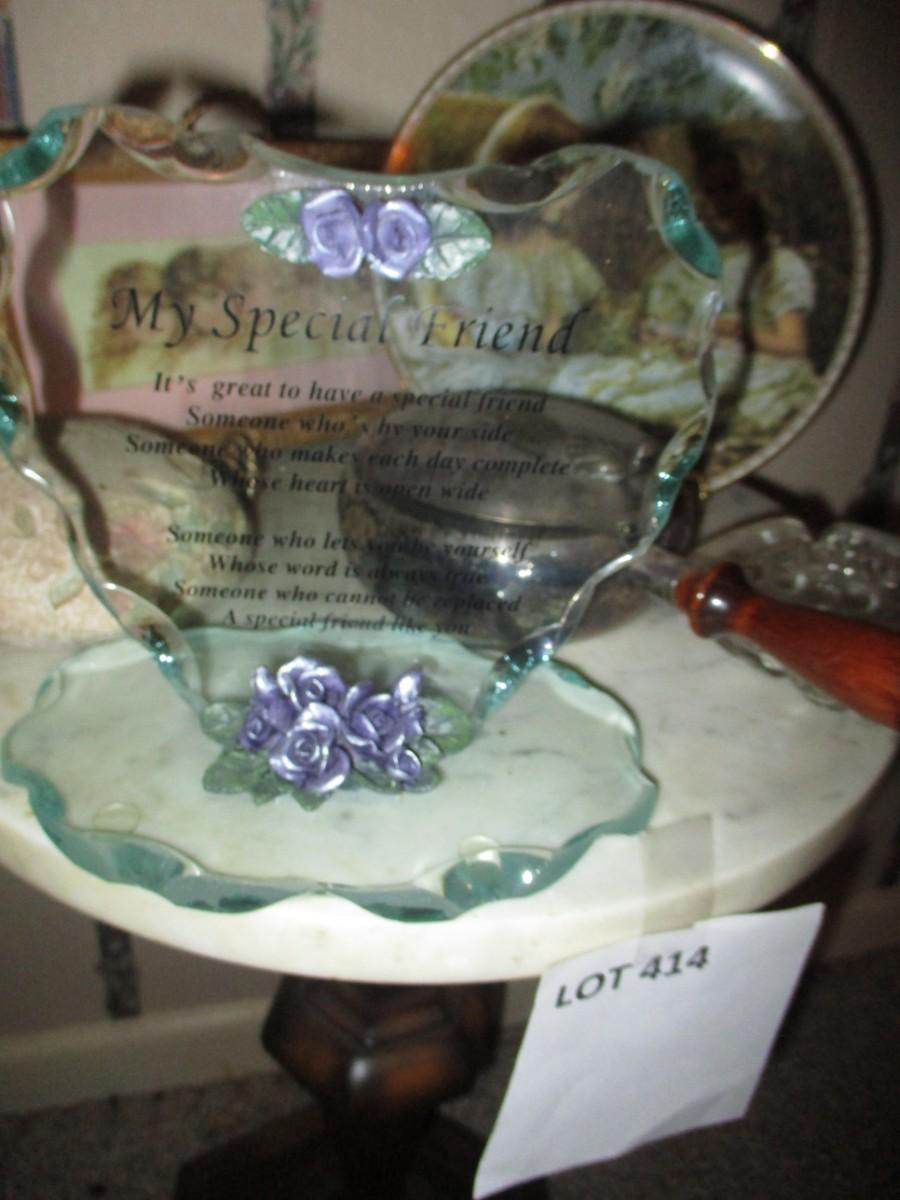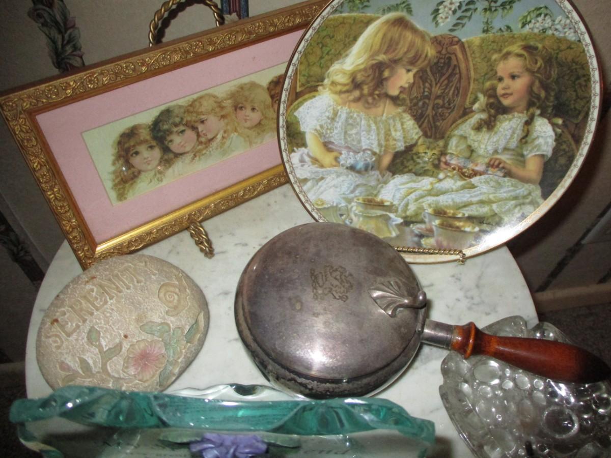 Table great condition. Glass friendship plaque, Decorative Plate, Small warming pan