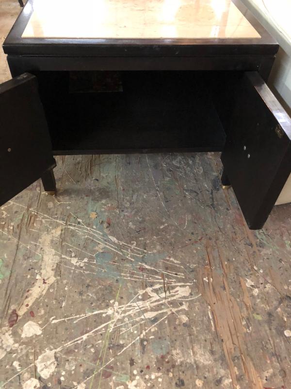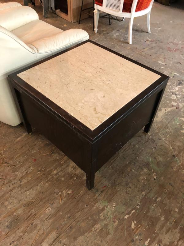 Good condition, some age related wear, measures 26" square, 20" tall. Inset marble top.