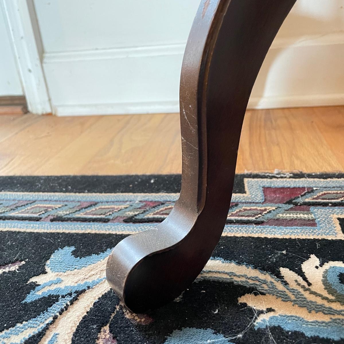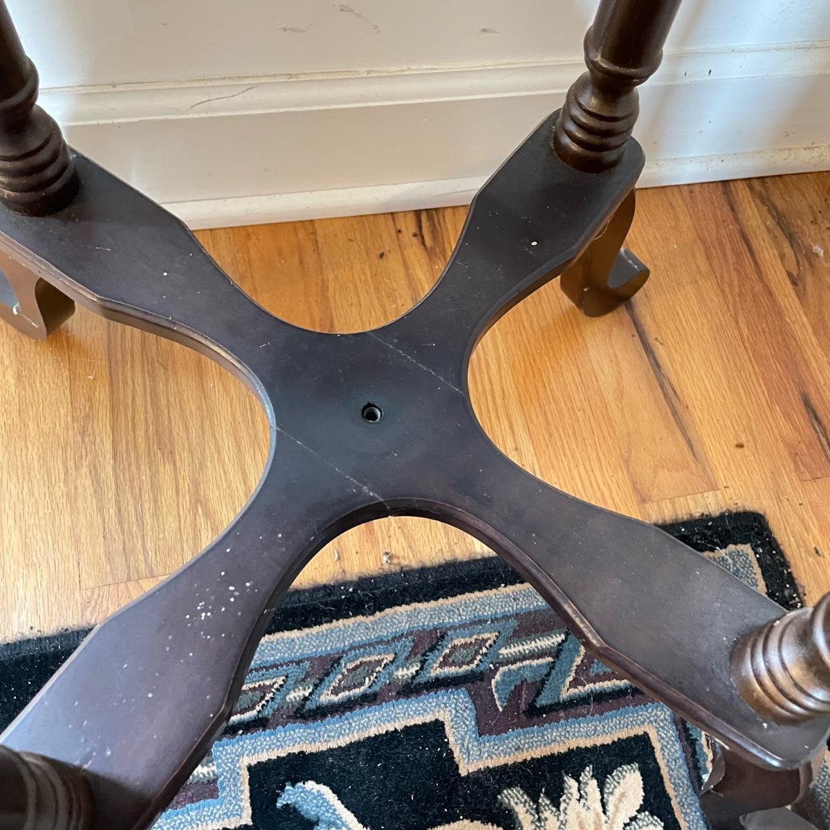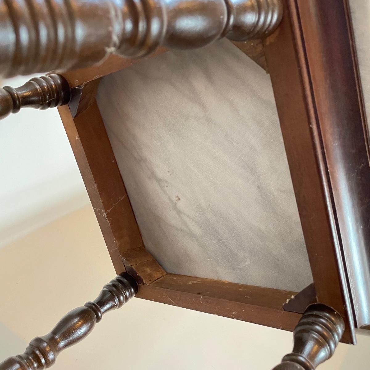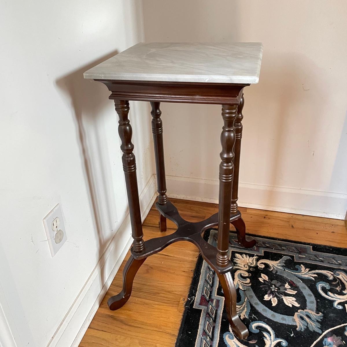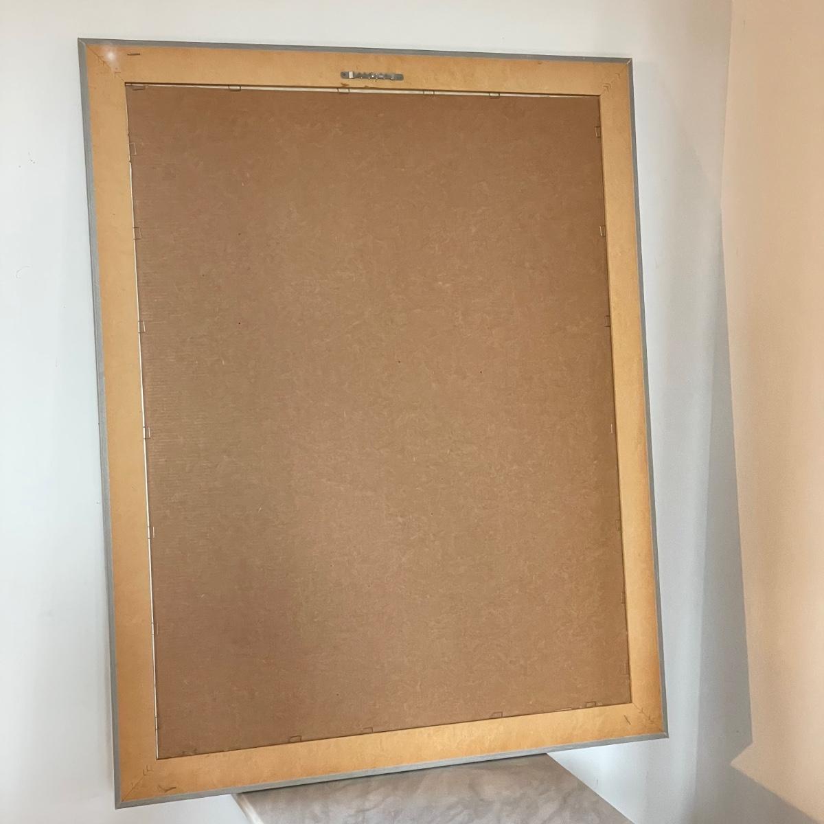 Beautifully framed art by John Zaccheo features a floral piece with a blue vase. Art sits behind glass in a wooden frame with light blue hues measuring 25.5” x 31.5”. Art is paired with a dark legged marble top side table/plant stand. The marble seems to be attached to the legs. It is in very nice condition with a small chip in one corner of the marble. Table measures 14.25”sq x 29”. See images. Local pick up only.