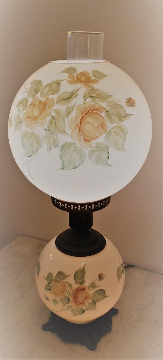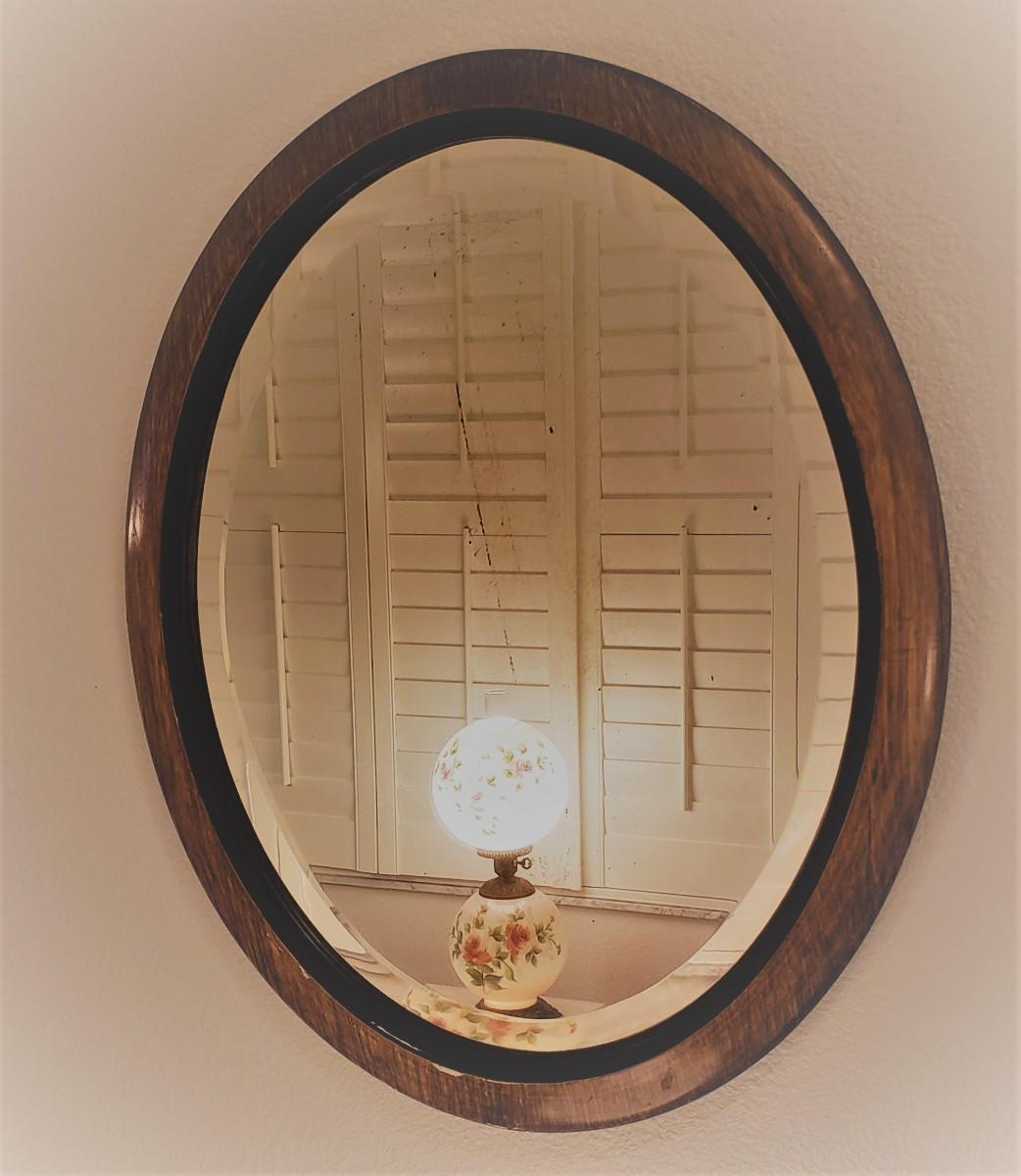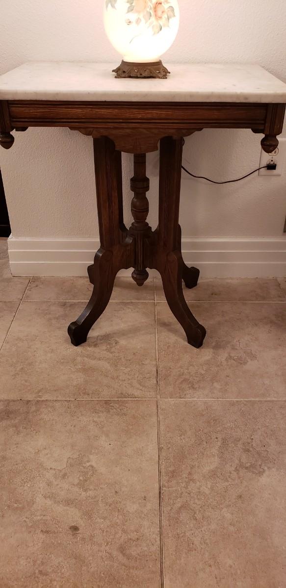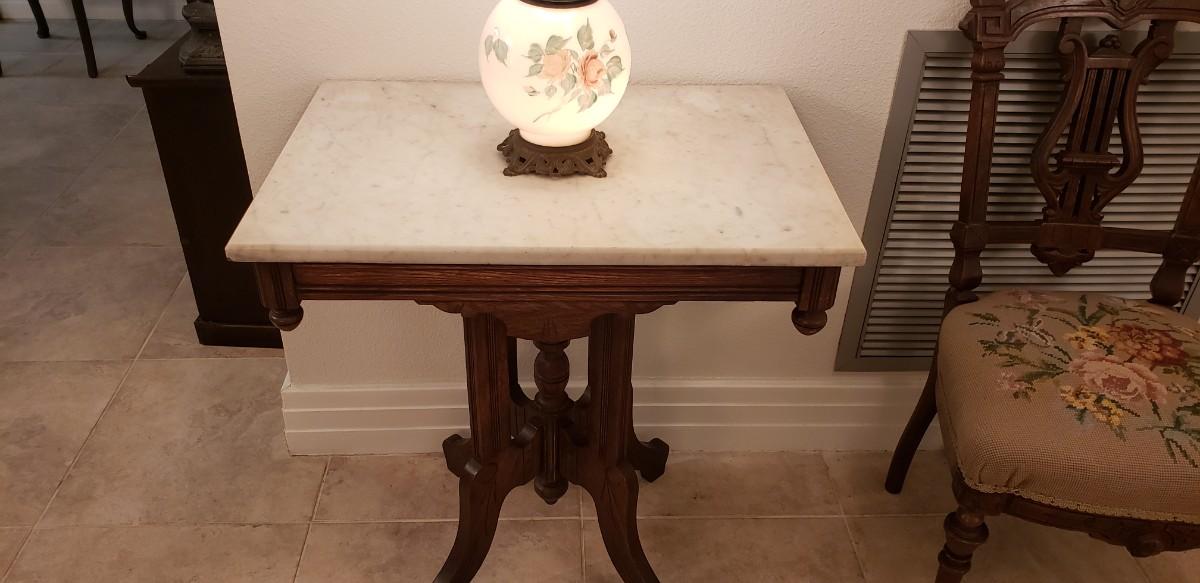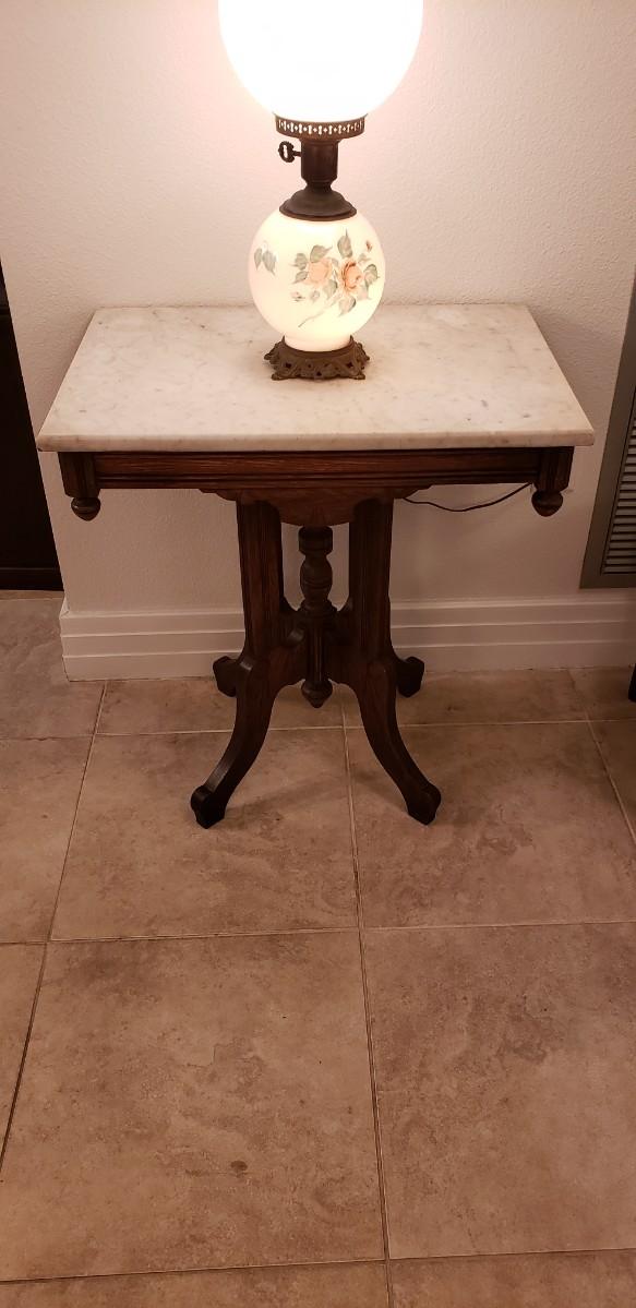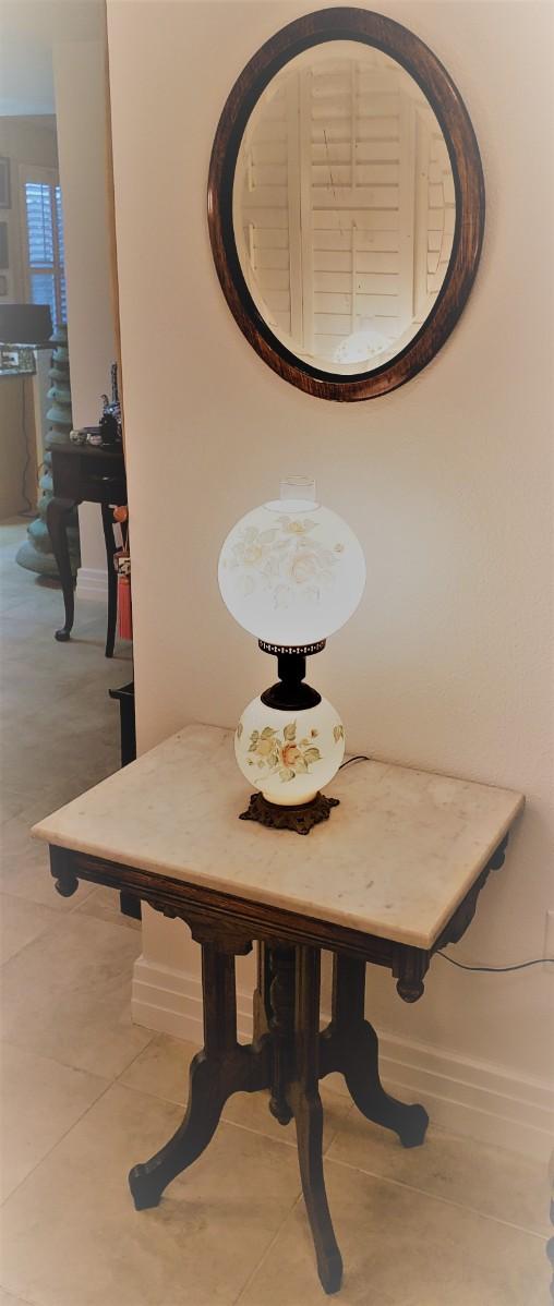 Marble Top Table with Lamp and Round Mirror