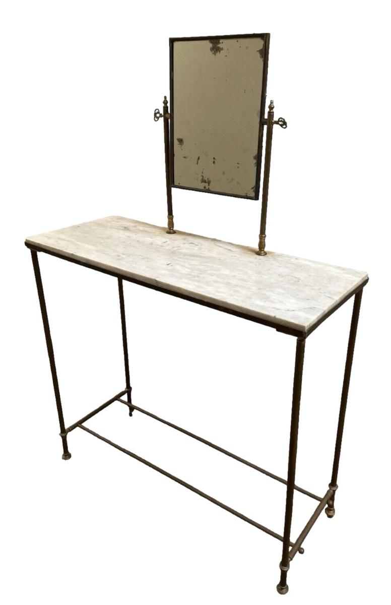 Antique Marble Top Metal Vanity Console w/ 360 Attached Mirror Shaving Table 31" x 12" x29.5"