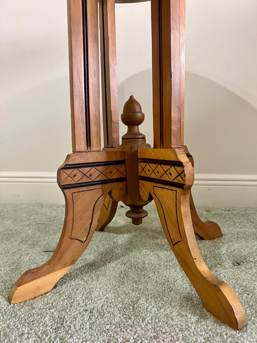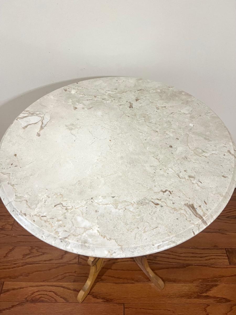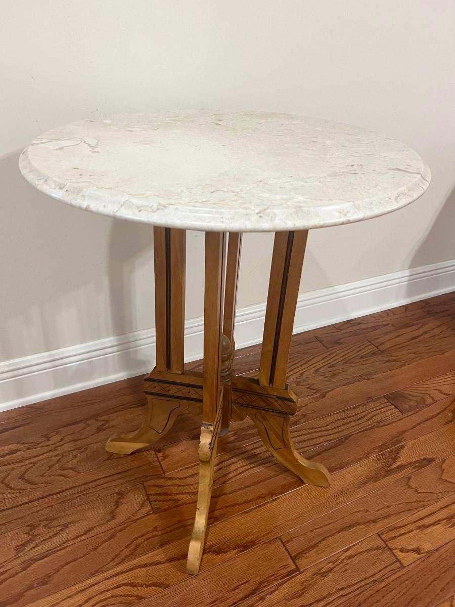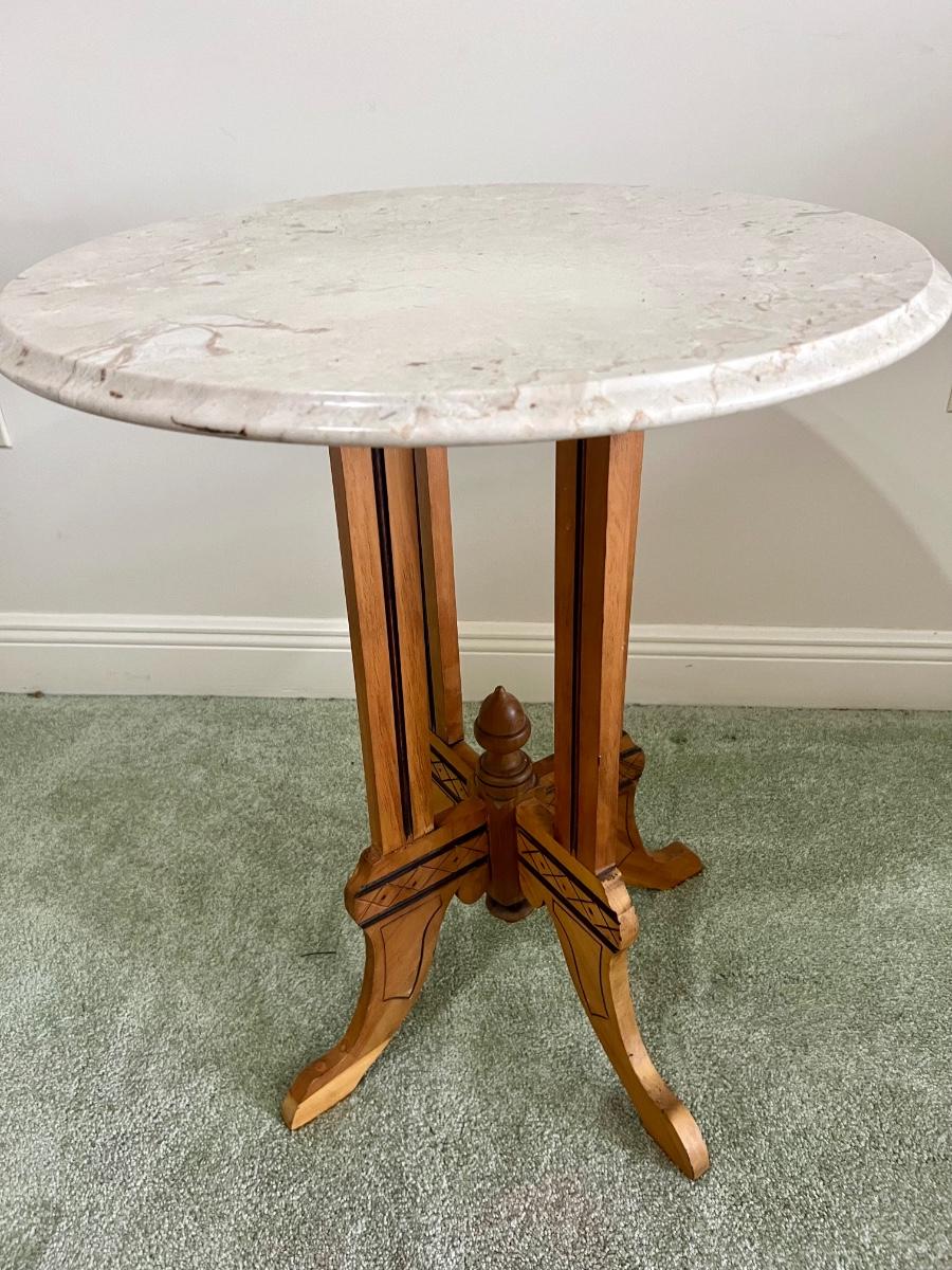 Marble Top Victorian Style Side Table Measures 28 inches tall and 24 inches round.