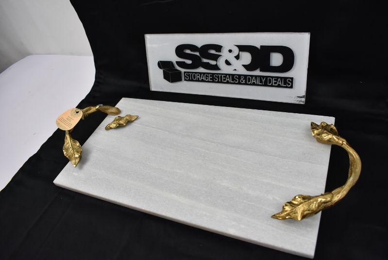 Marble Tray with Gold-toned Handles. 1 handle is broken, Both handles are loose