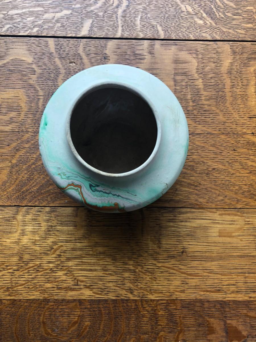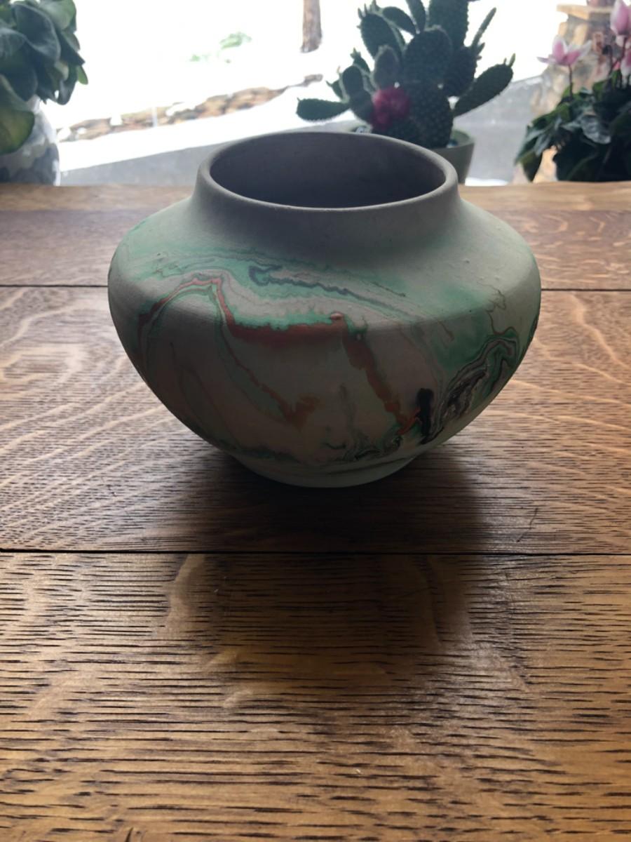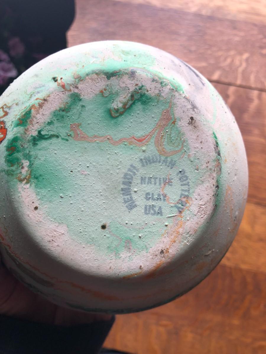 This Native American Pottery Vase is signed Nemadji Indian Pottery Native Clay USA and is excellent condition with no chips, checks or cracks. 4in tall and 6in wide.