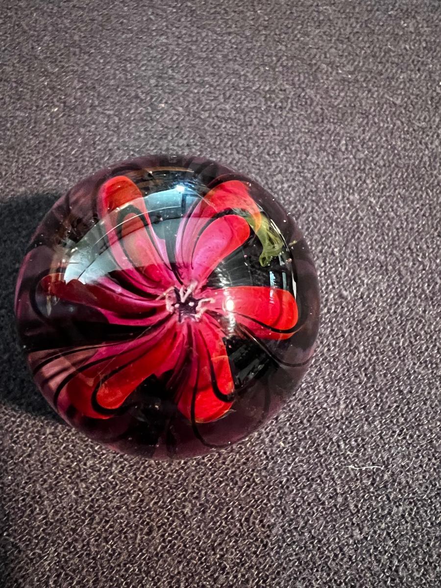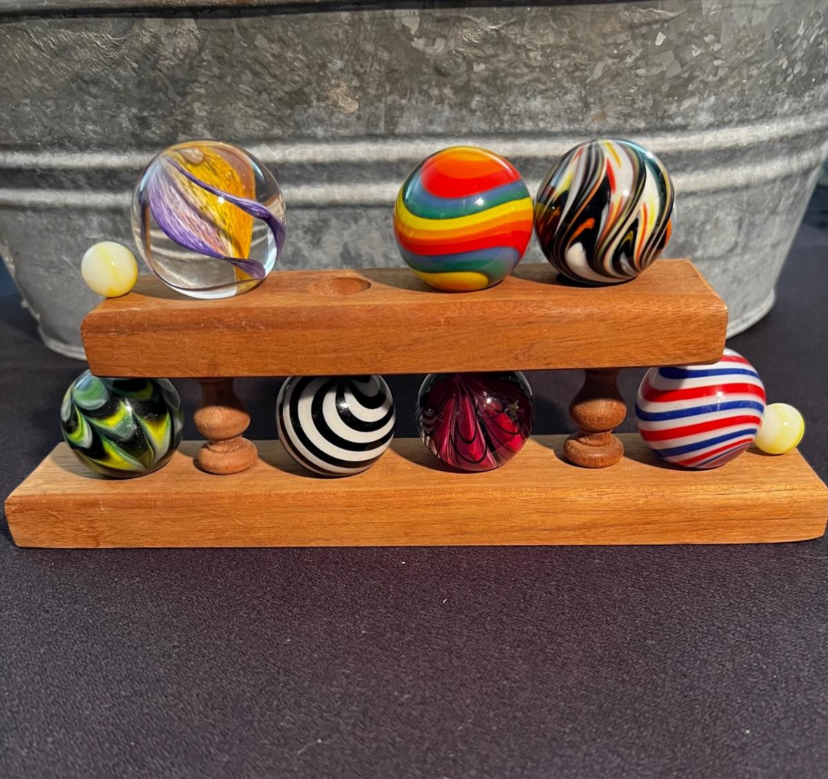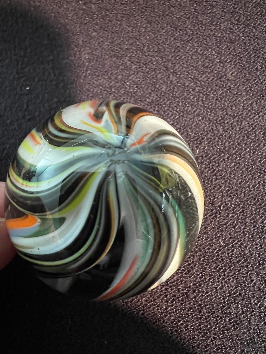 Lot of 7 Marbles all signed. The yellow marbles is for scale.