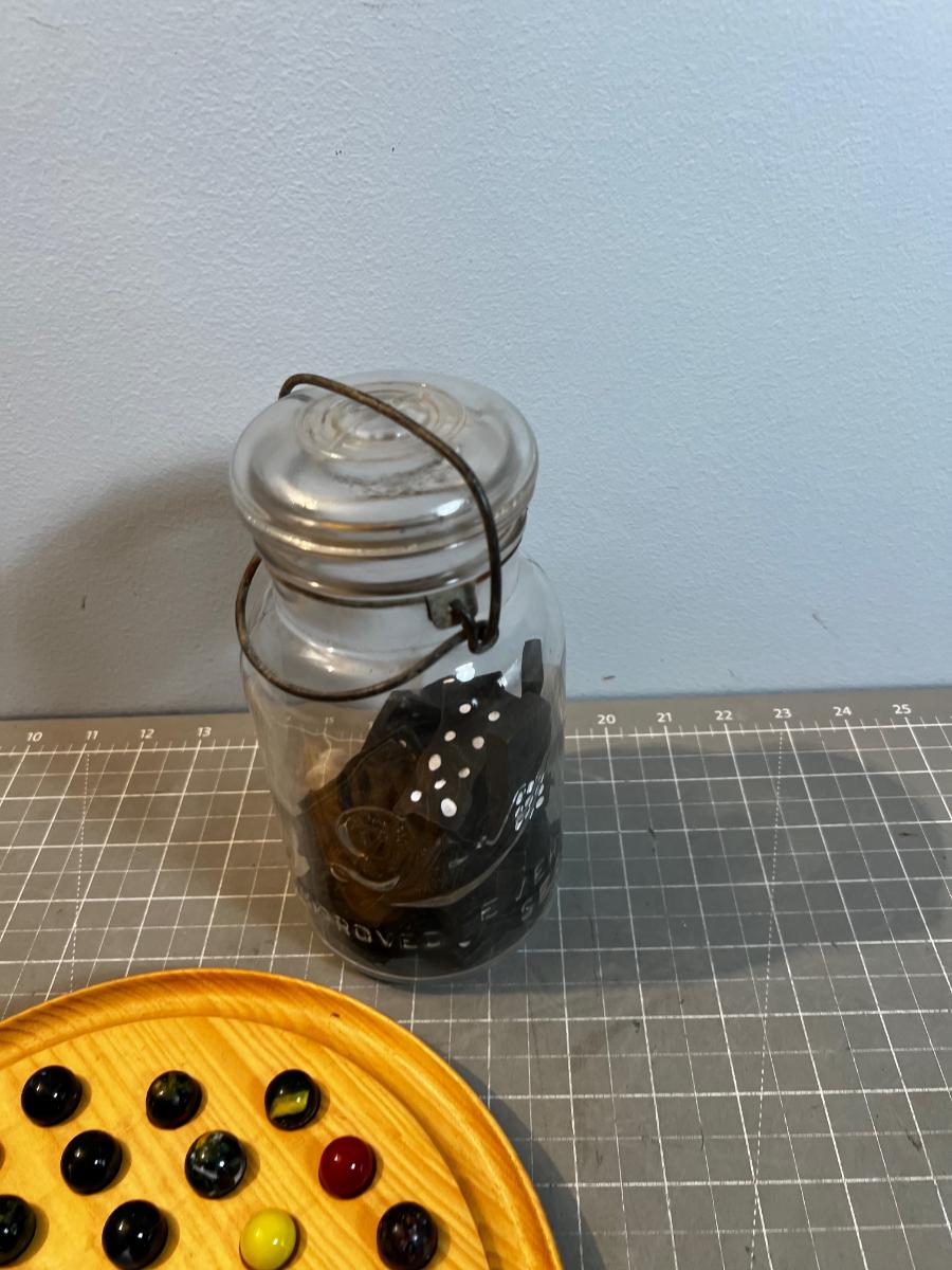 Marbles and Dominoes in an old Jar