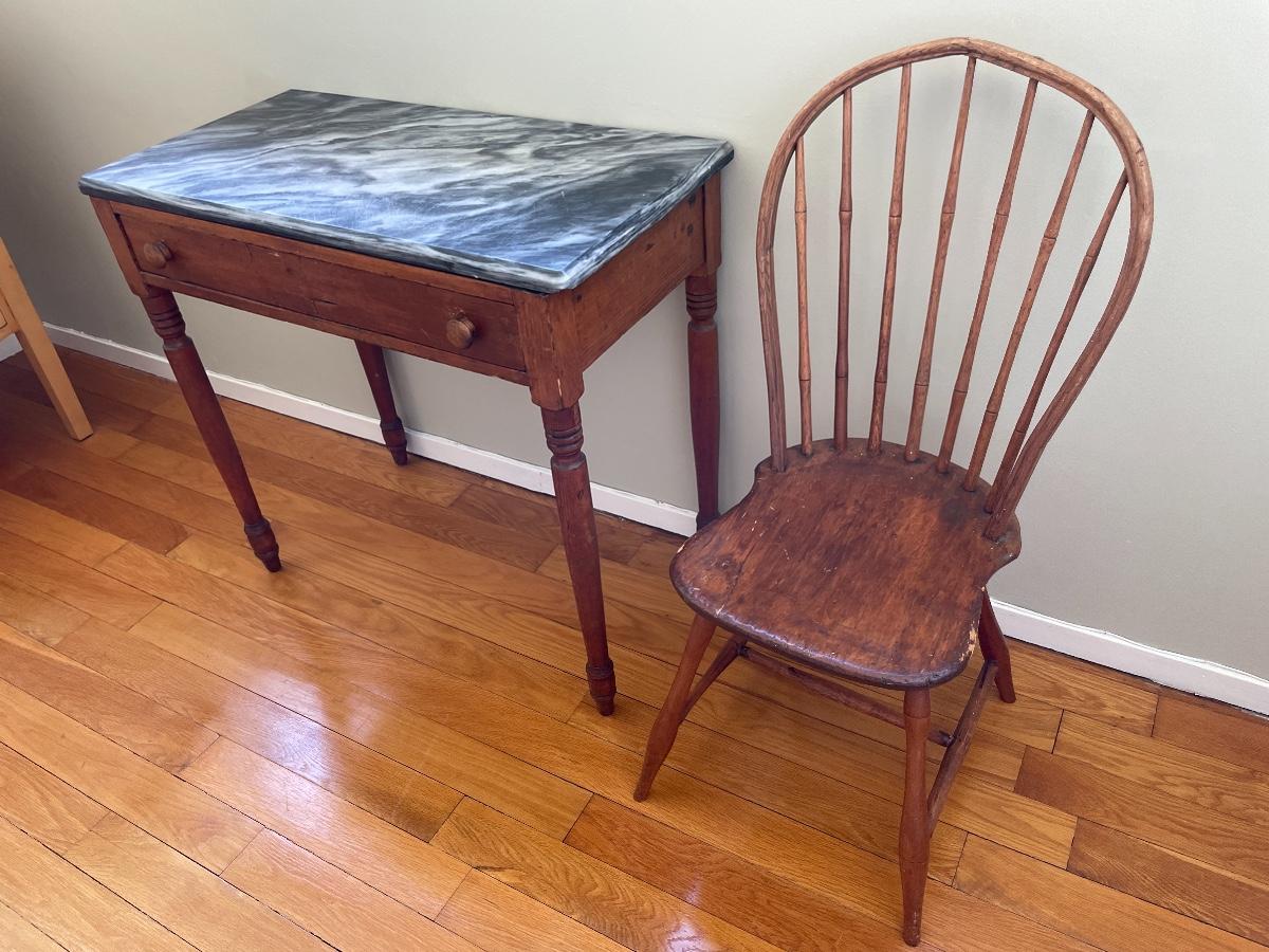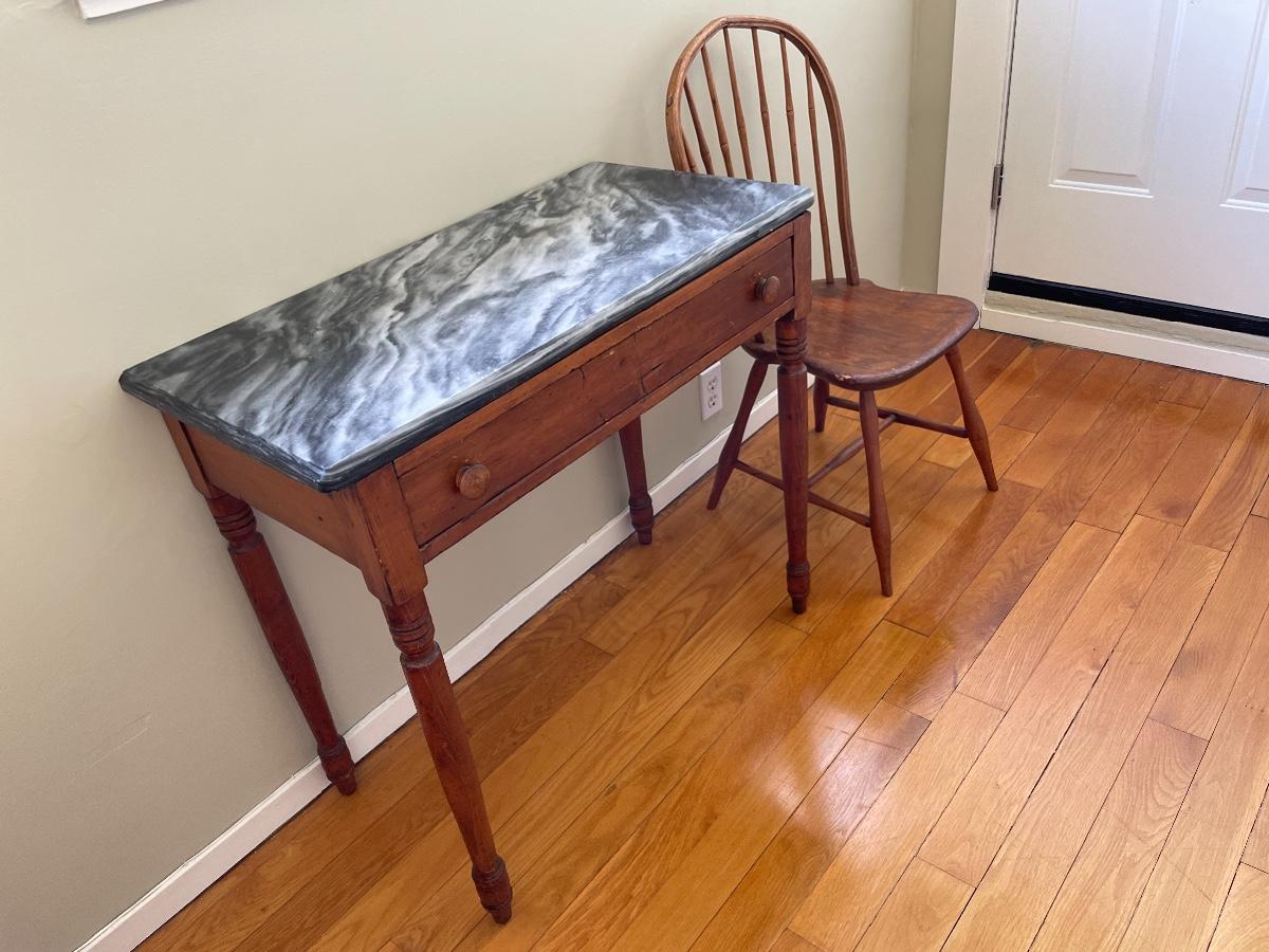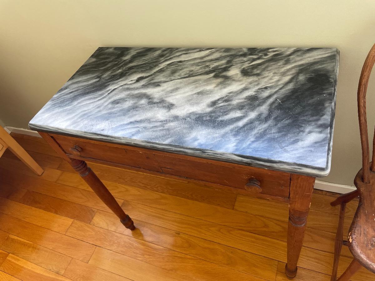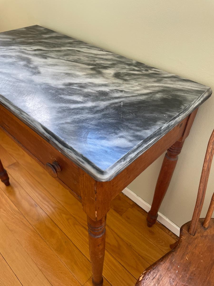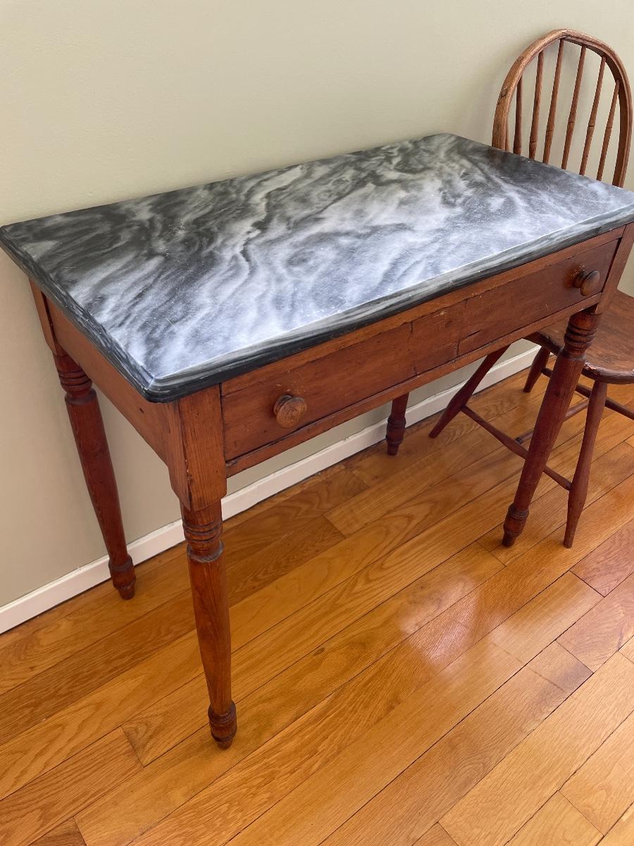 Sold “˜as is’ table is very old and the frame of desk needs to be reinforced but is a beautiful table