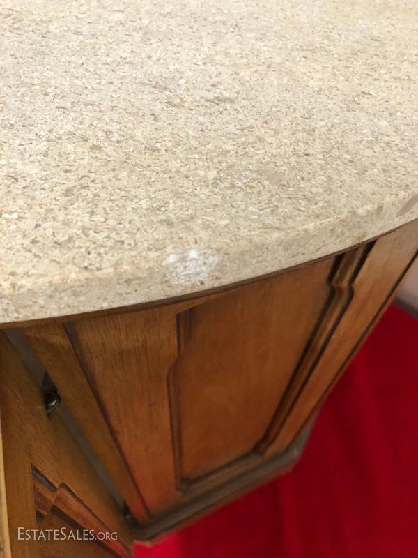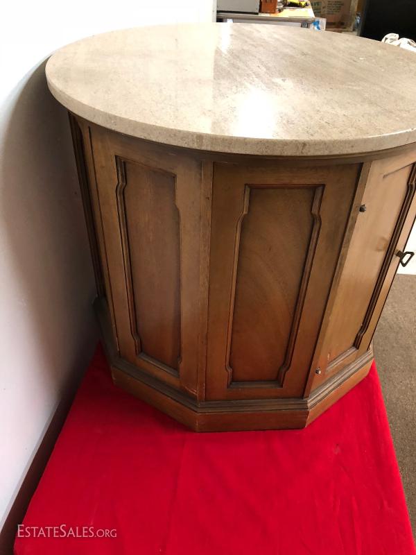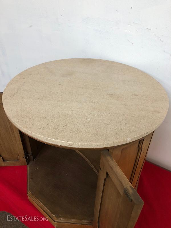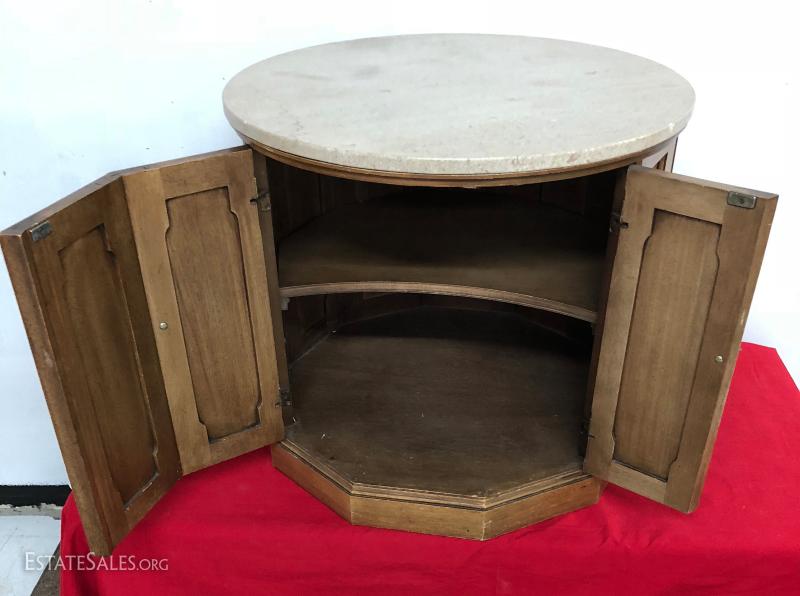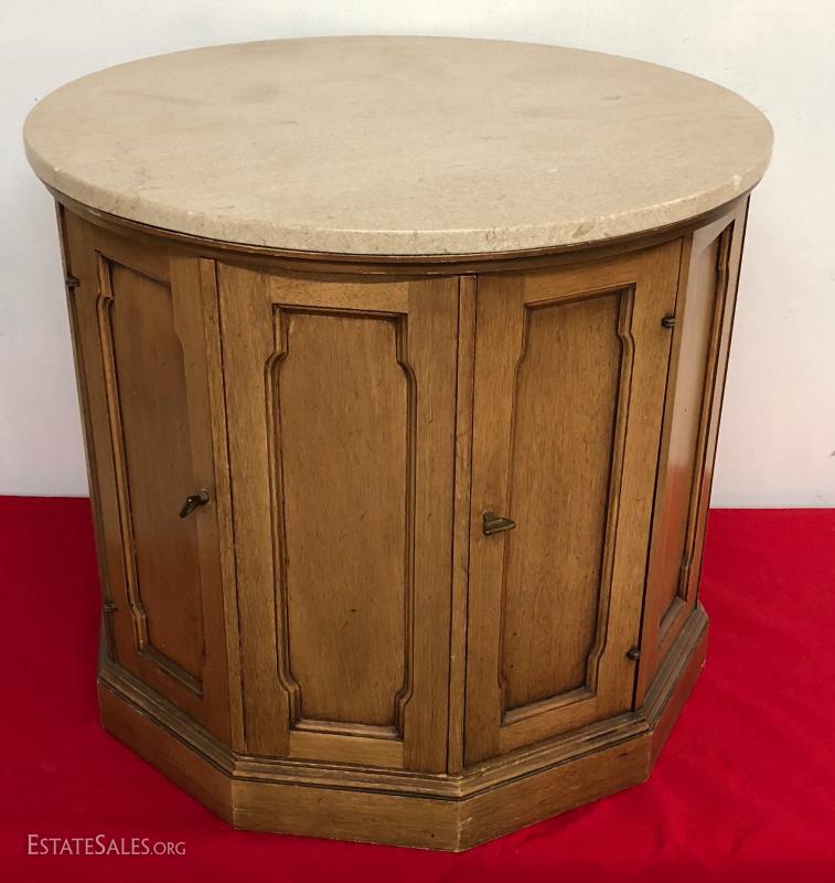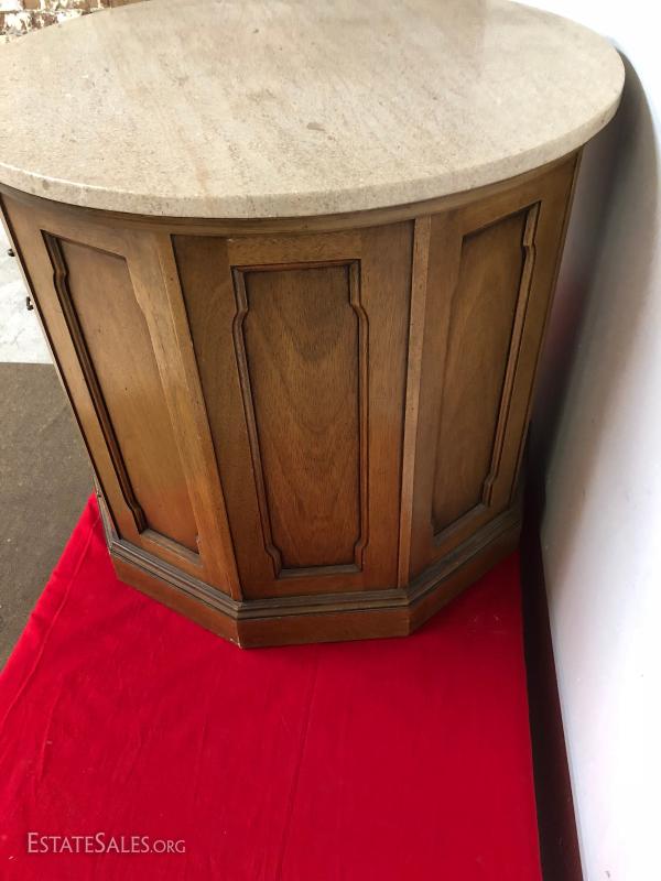Marbletop Pecan Drum Table End Table...