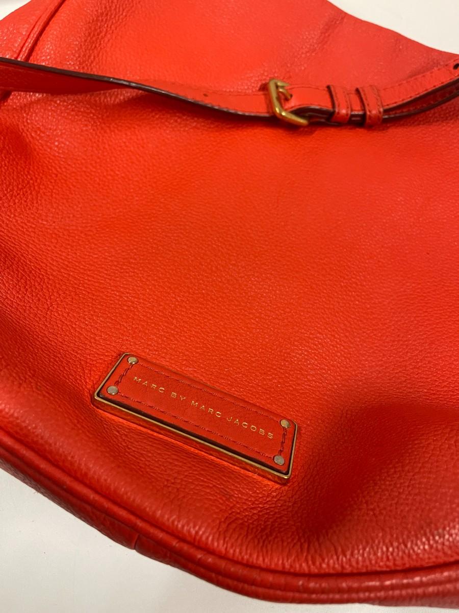Marc By Marc Jacobs Too Hot To Handle Leather Hobo Bag. Good condition with some wear at the bottom corners and some scratches to hardware, examine photos carefully. Approx 12" x 12"