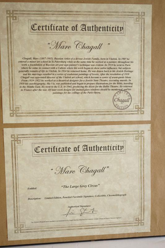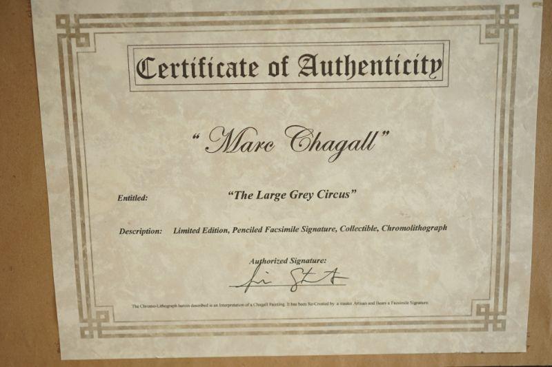 Marc Chagall chromolithograph with a facsimile signature. It is from his drawing of "The Large Grey Circus" Limited Edition.