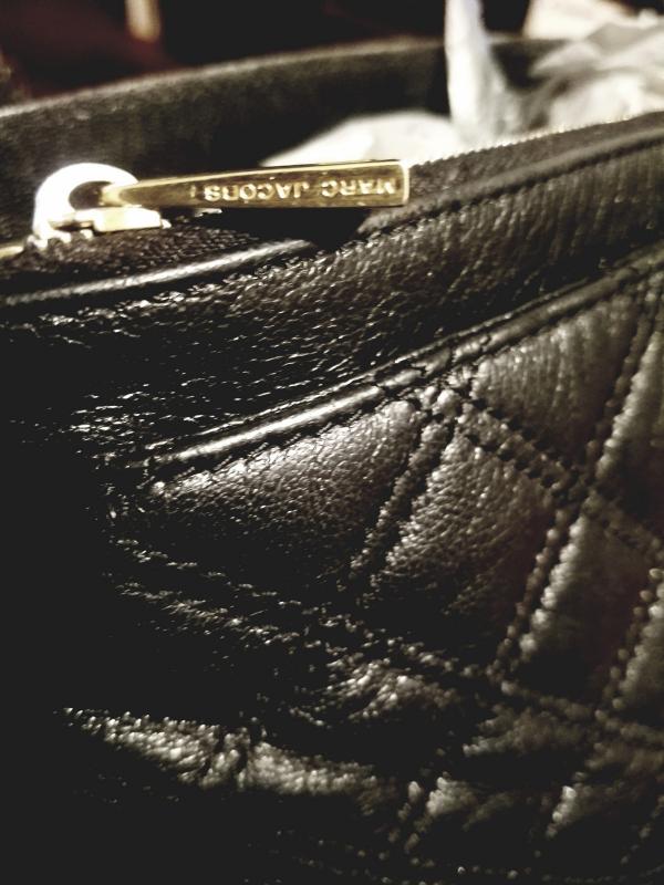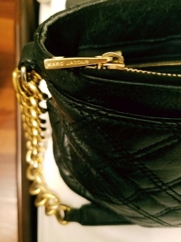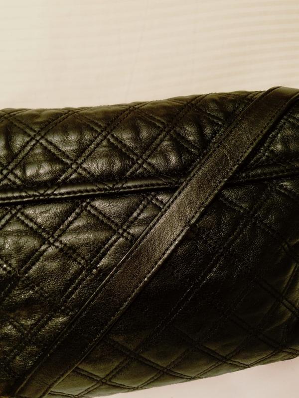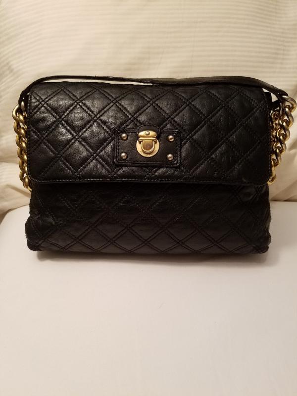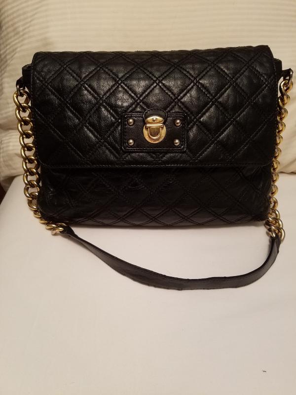 A stunner by Marc Jacobs. It is quilted with a heavy gold chain as strap. with a small part of leather strap at top . signed on the leather and the gold hardware. The inside is canvas with some leather .In very good vintage condition all outside and in. The only part that is a bit used is the top little part of leather on the strap and even that is fine.