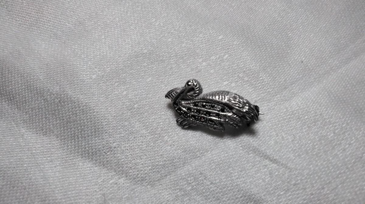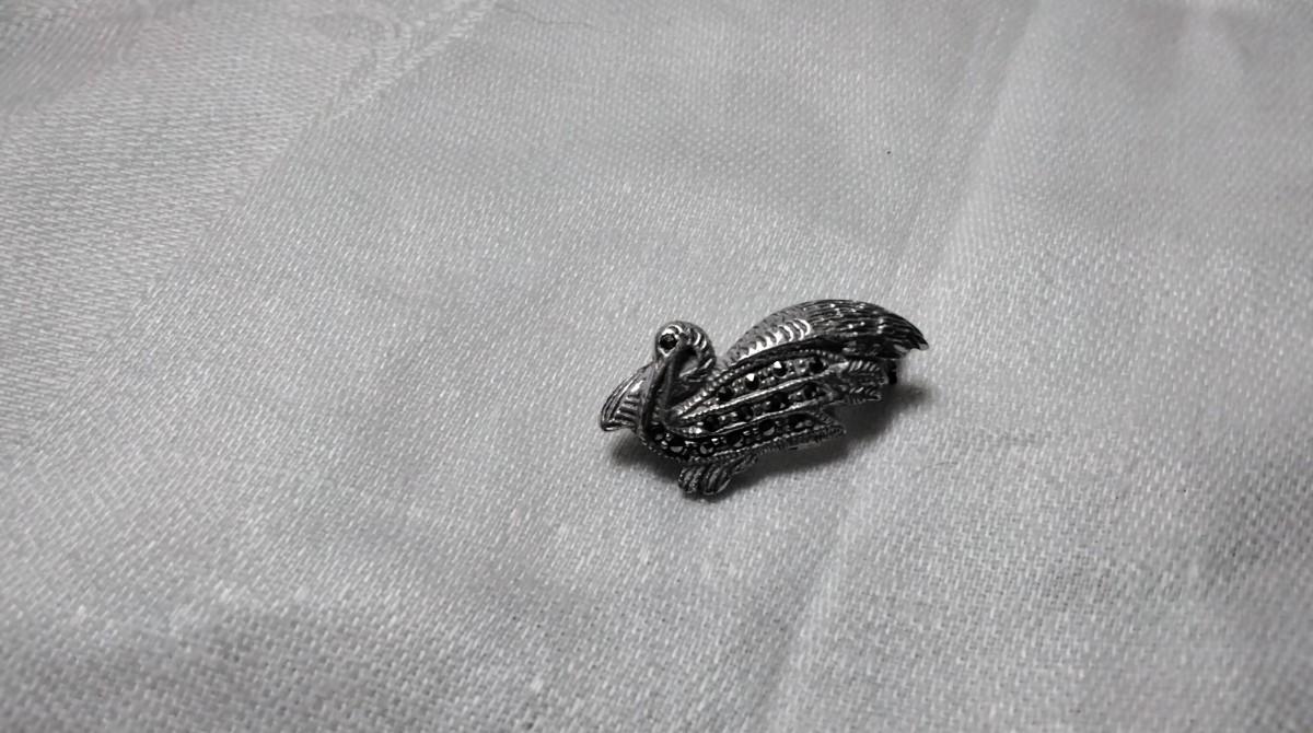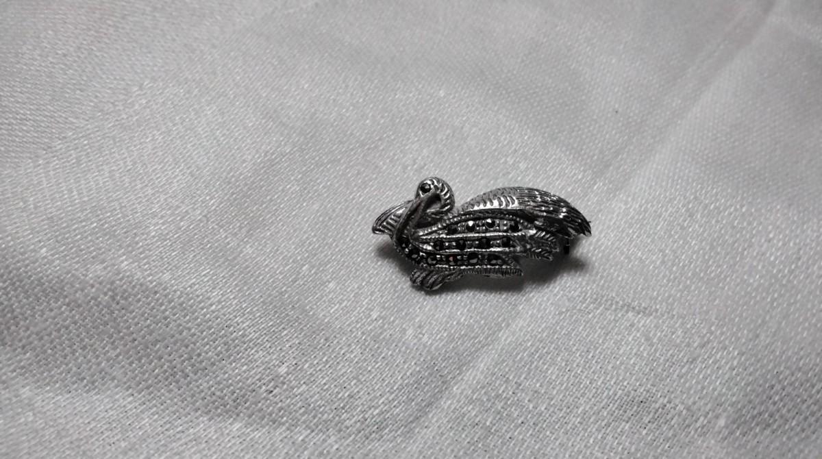 Vintage Marcasite Pelican 925 Brooch