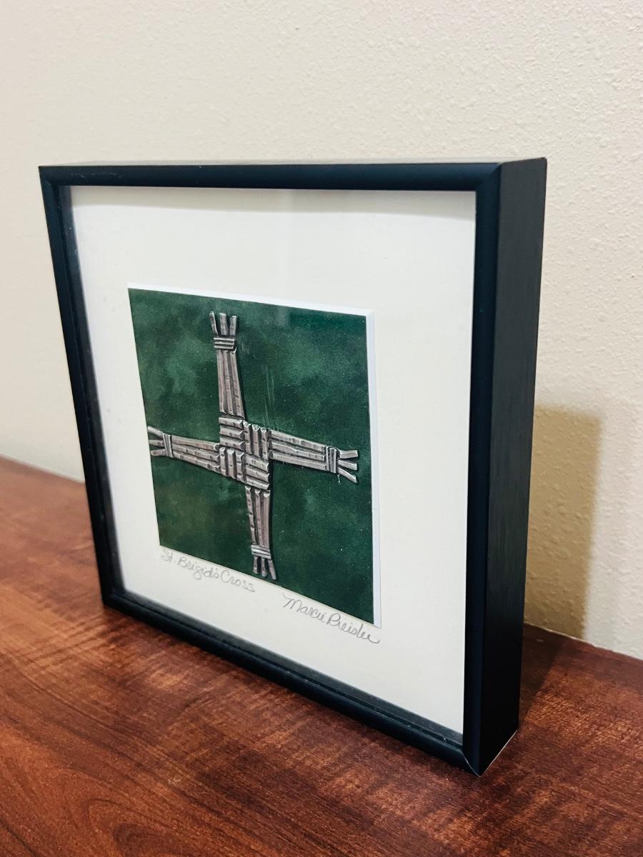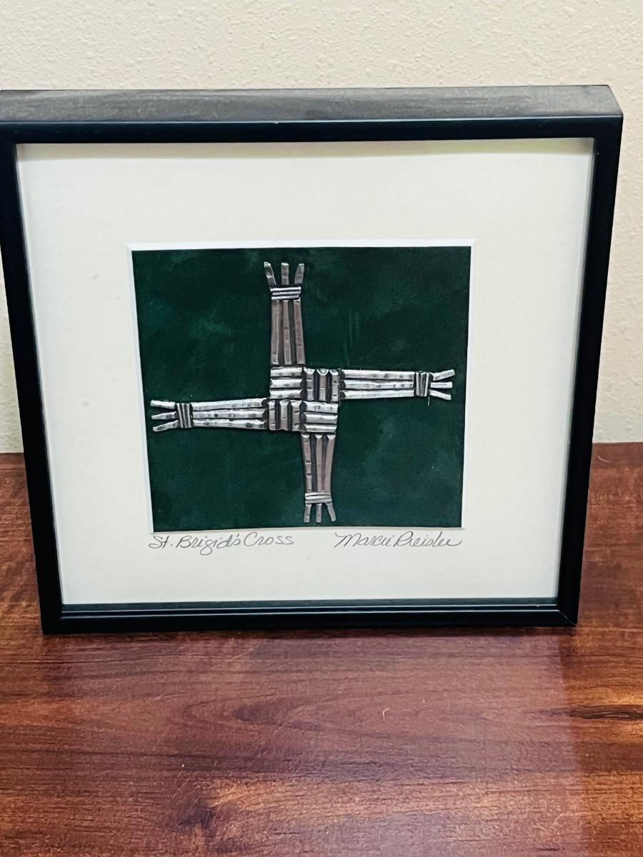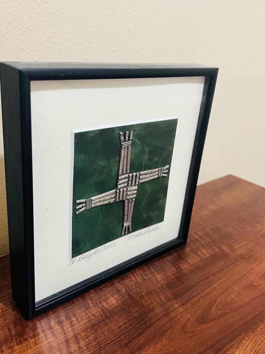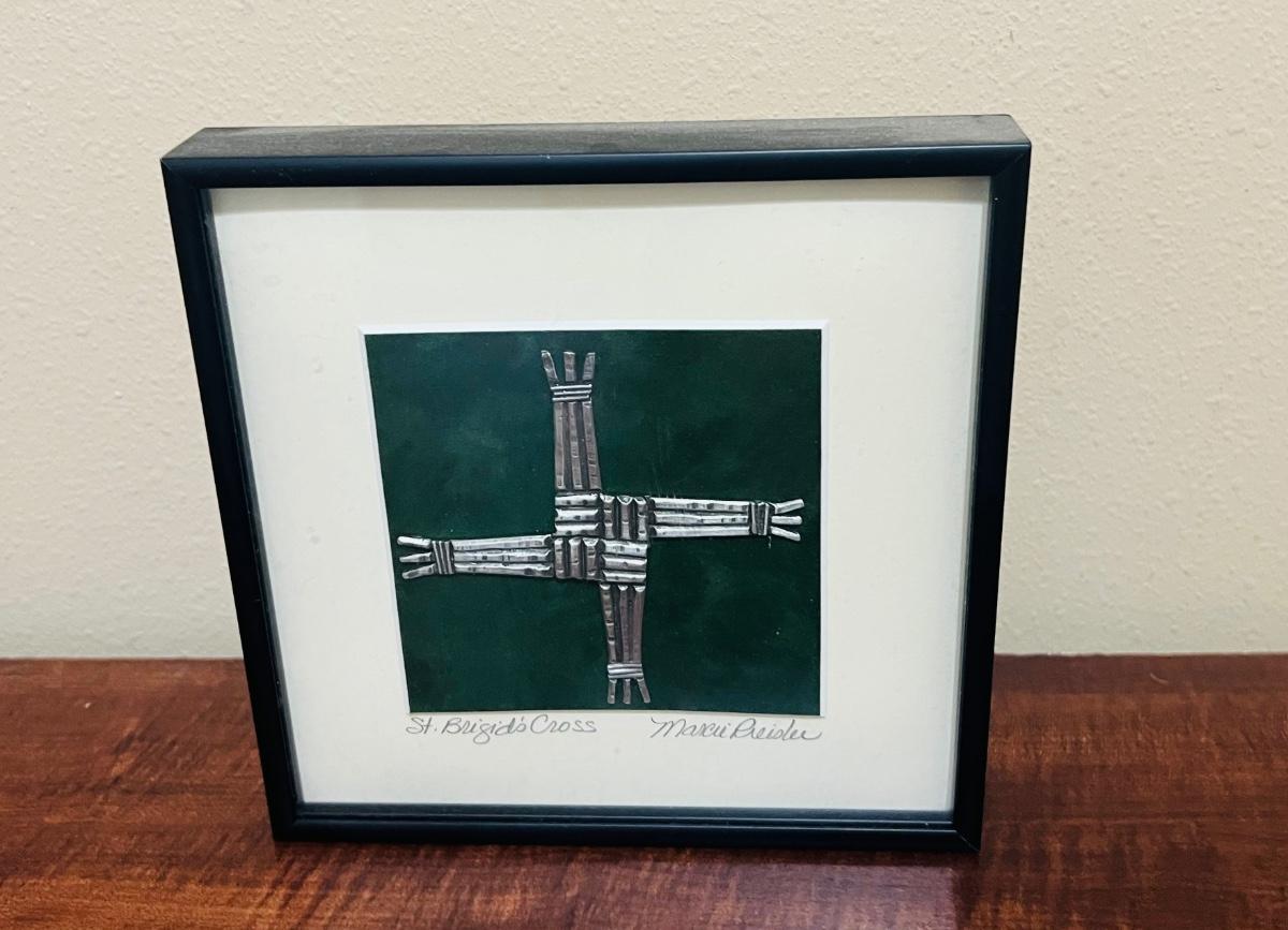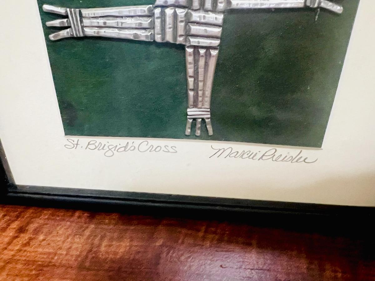 Marcie Preisler framed pencil-signed handcrafted pewter St Brigid's Cross