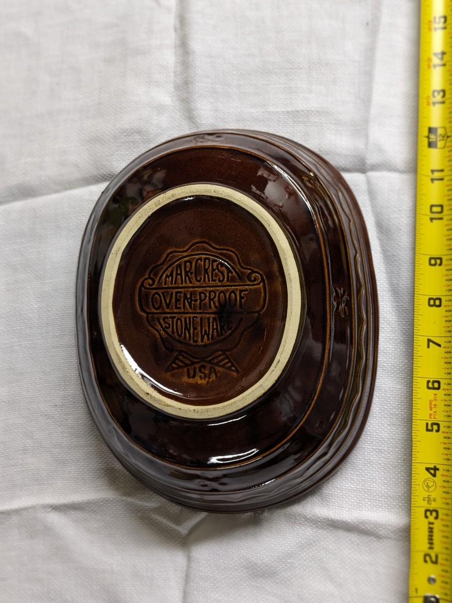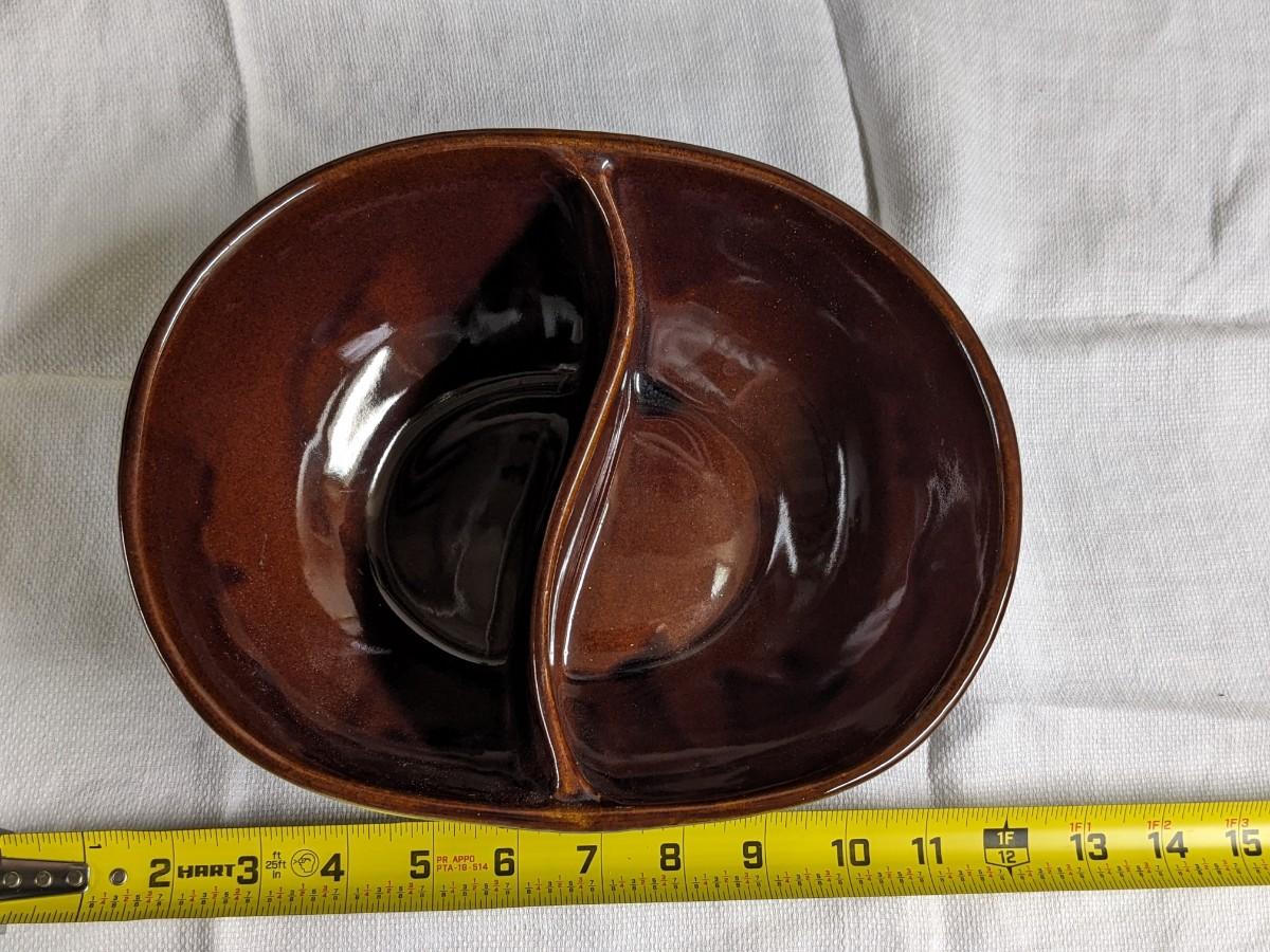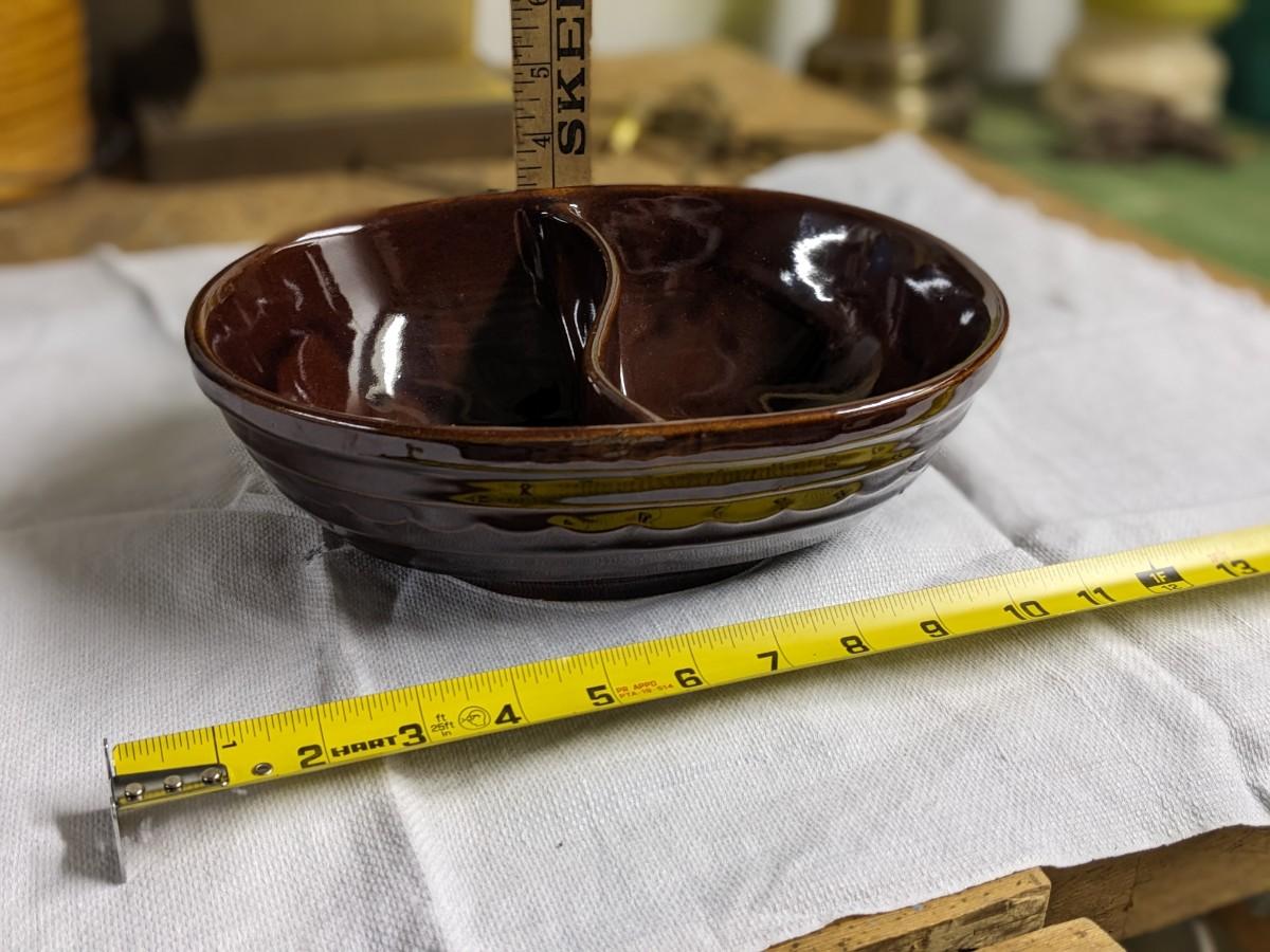 MarCrest Ovenproof Stoneware Divided Pottery Brown Glaze Daisy Dot Bowl